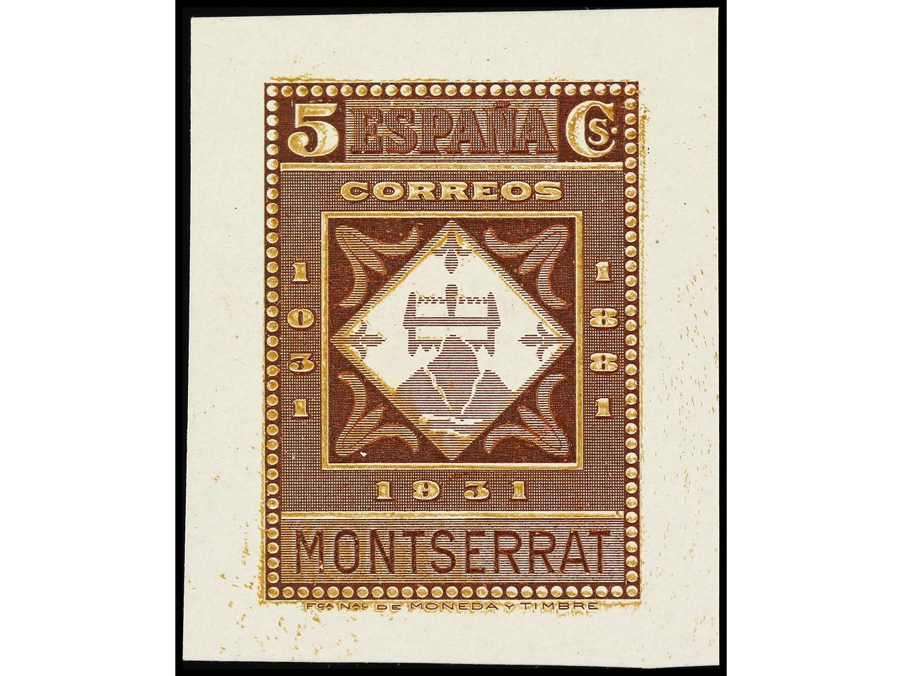 ESPAÑA. MONTSERRAT. PRUEBA DE PUNZÓN. 5 cts. castaño rojo. RARA (Gálvez 2944). (Image1)