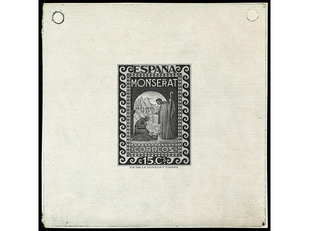 ESPAÑA. MONTSERRAT. PRUEBA DE PUNZÓN. 15 cts. negro. RARA con estos márgenes (Gálvez 2934). (Image1)