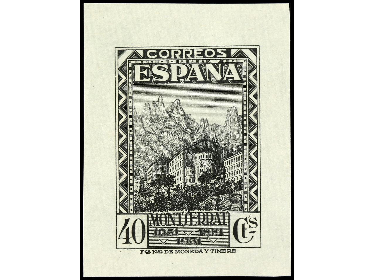 ESPAÑA. MONTSERRAT. PRUEBA DE PUNZÓN. 40 cts. negro. RARA. (Gálvez 2938). (Image1)