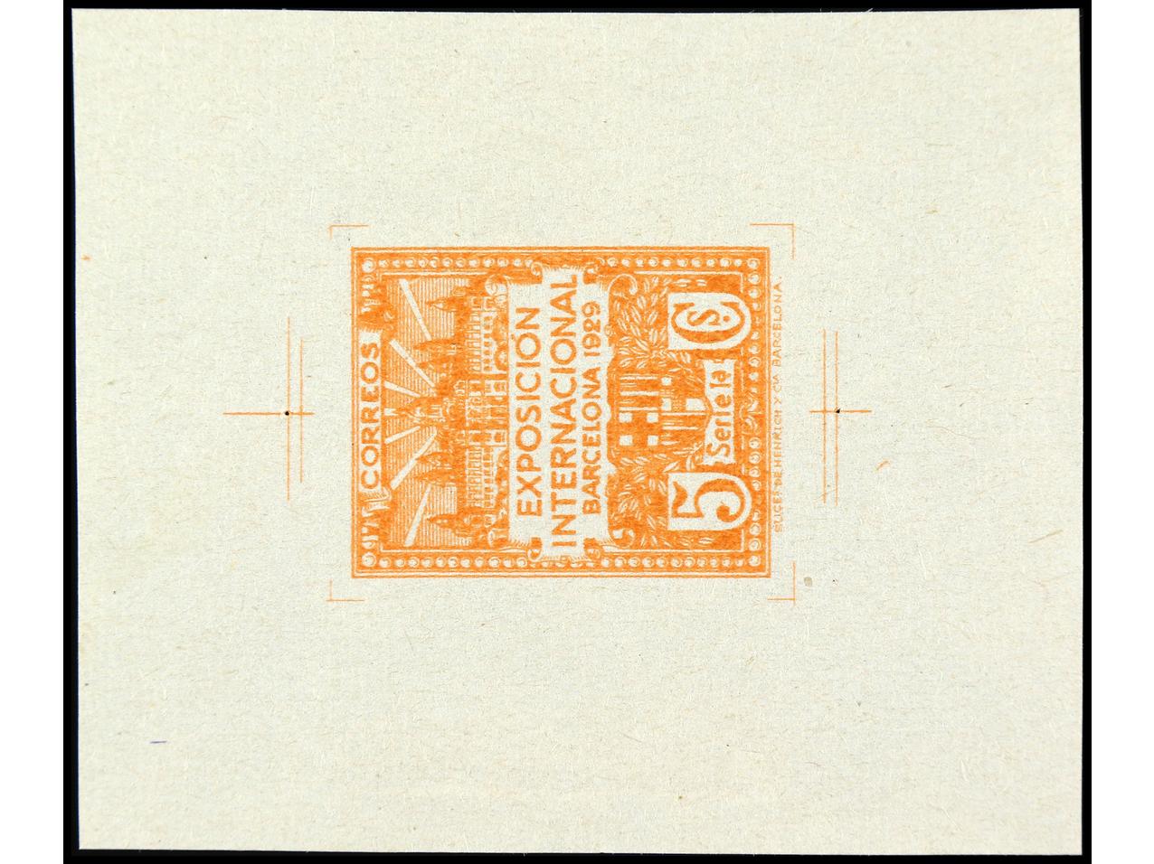 ESPAÑA: AYUNTAMIENTO DE BARCELONA. PRUEBA DEL REPORTE ORIGINAL. 5 cts. naranja. RARA. (Gálvez B2). (Image1)