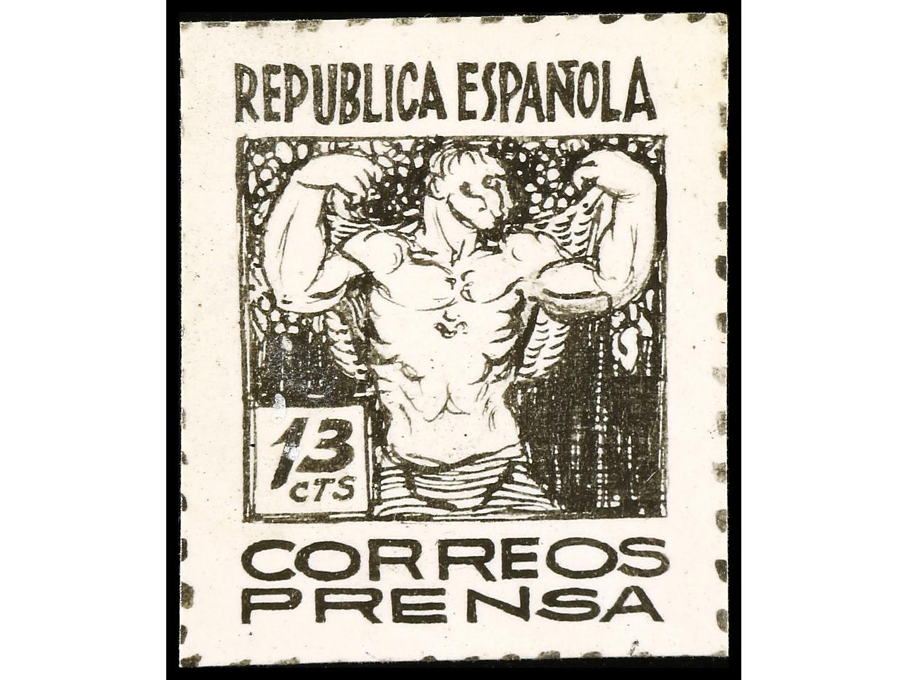 ESPAÑA. REPÚBLICA. PRUEBA FOTOGRÁFICA ORIGINAL. 13 cts. CORREOS PRENSA. Diseño no adoptado. (Image1)