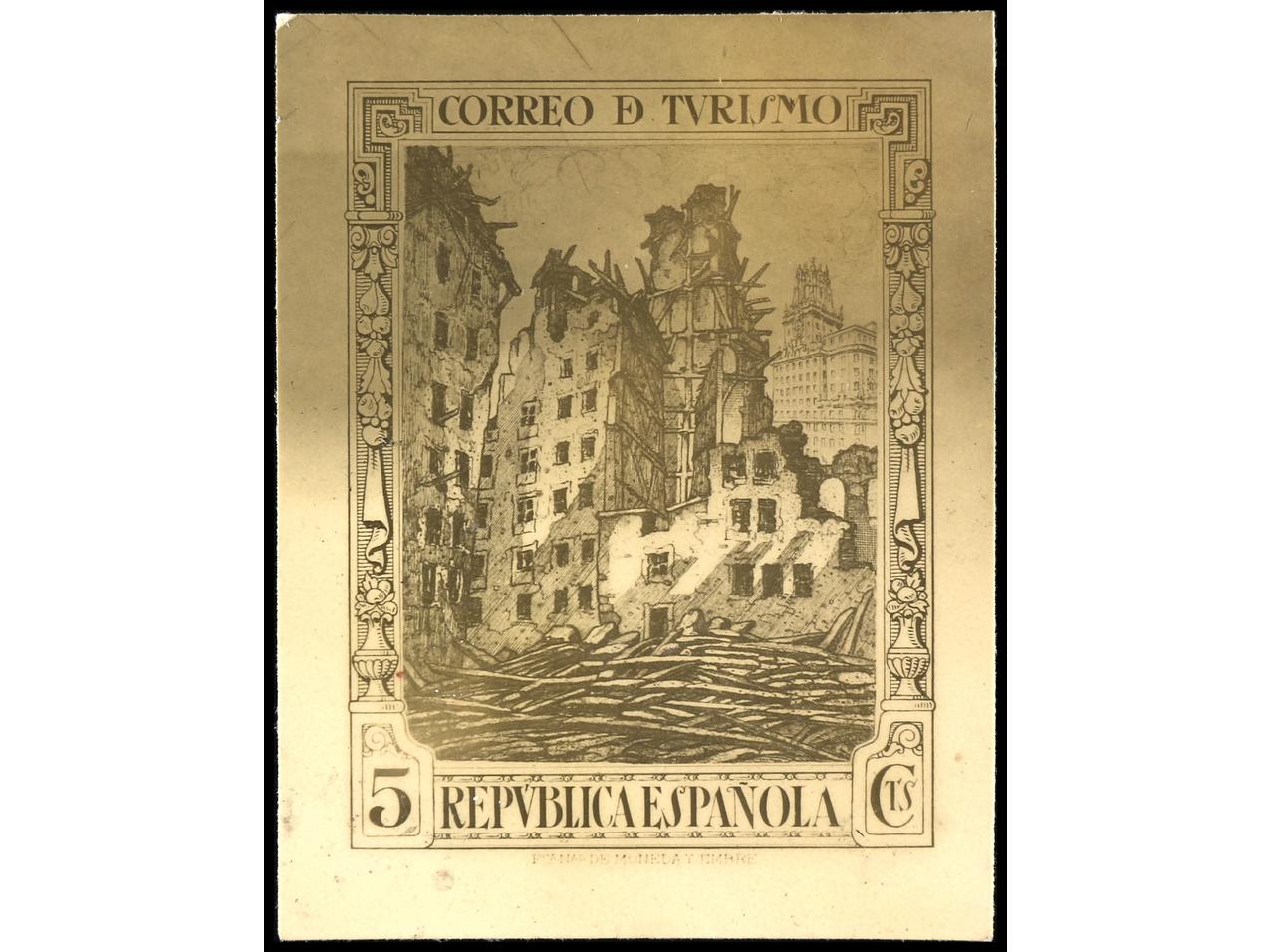 ESPAÑA. REPÚBLICA. PRUEBA FOTOGRÁFICA ORIGINAL. 5 cts. CORREO DE TURISMO. Diseño no adoptado. (Image1)
