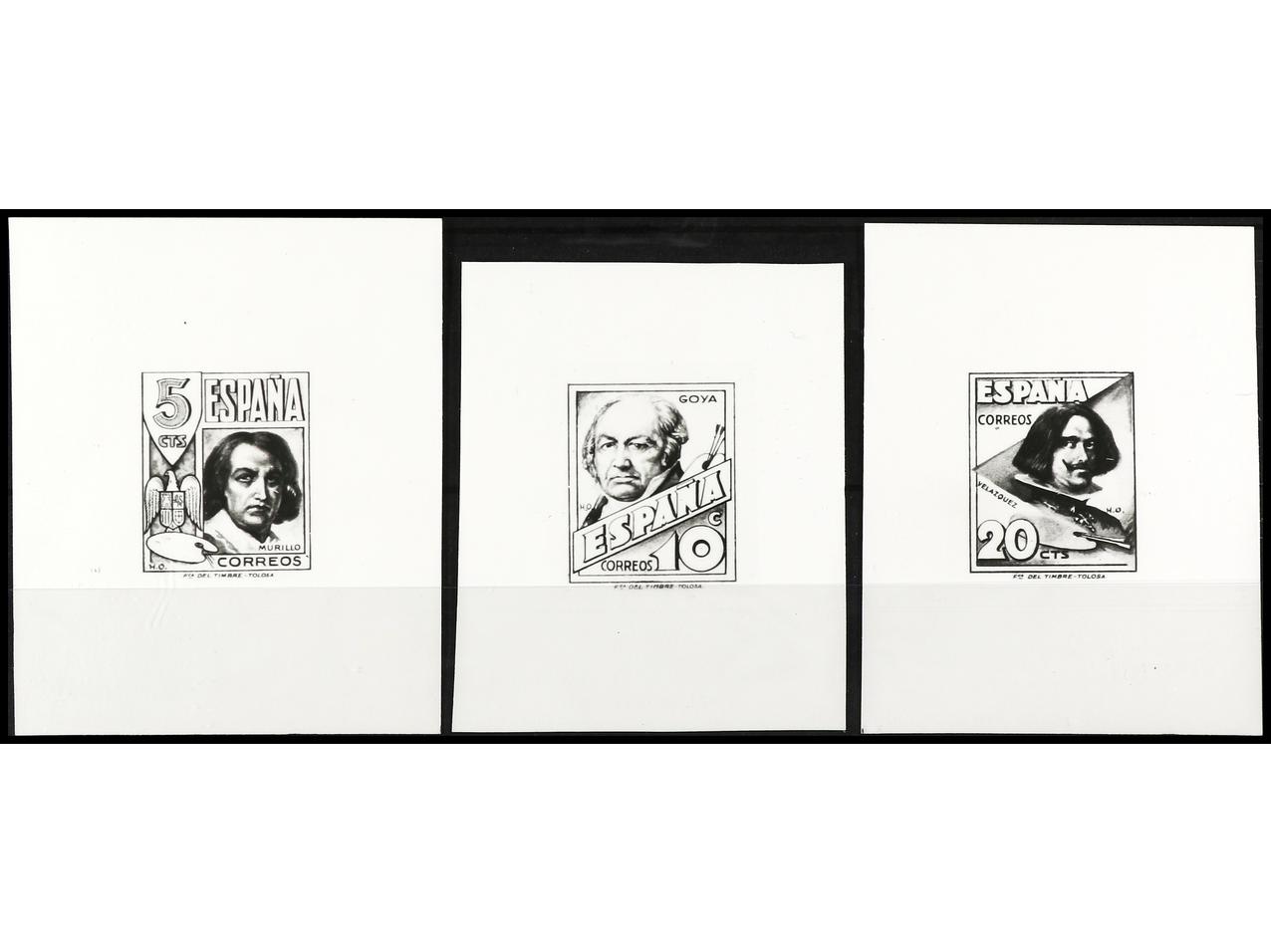 ESPAÑA. 3 PRUEBAS FOTOGRÁFICAS de modelos no adoptados. Murillo, 5 cts; Goya, 10 cts. y Velázquez, 20 cts. (Image1) (Image2)