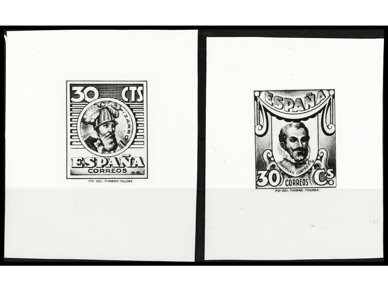 ESPAÑA. 2 PRUEBAS FOTOGRÁFICAS de modelos no adoptados con facial de 30 cts. de Hernán Cortés y Pizarro. (Image1) (Image2)