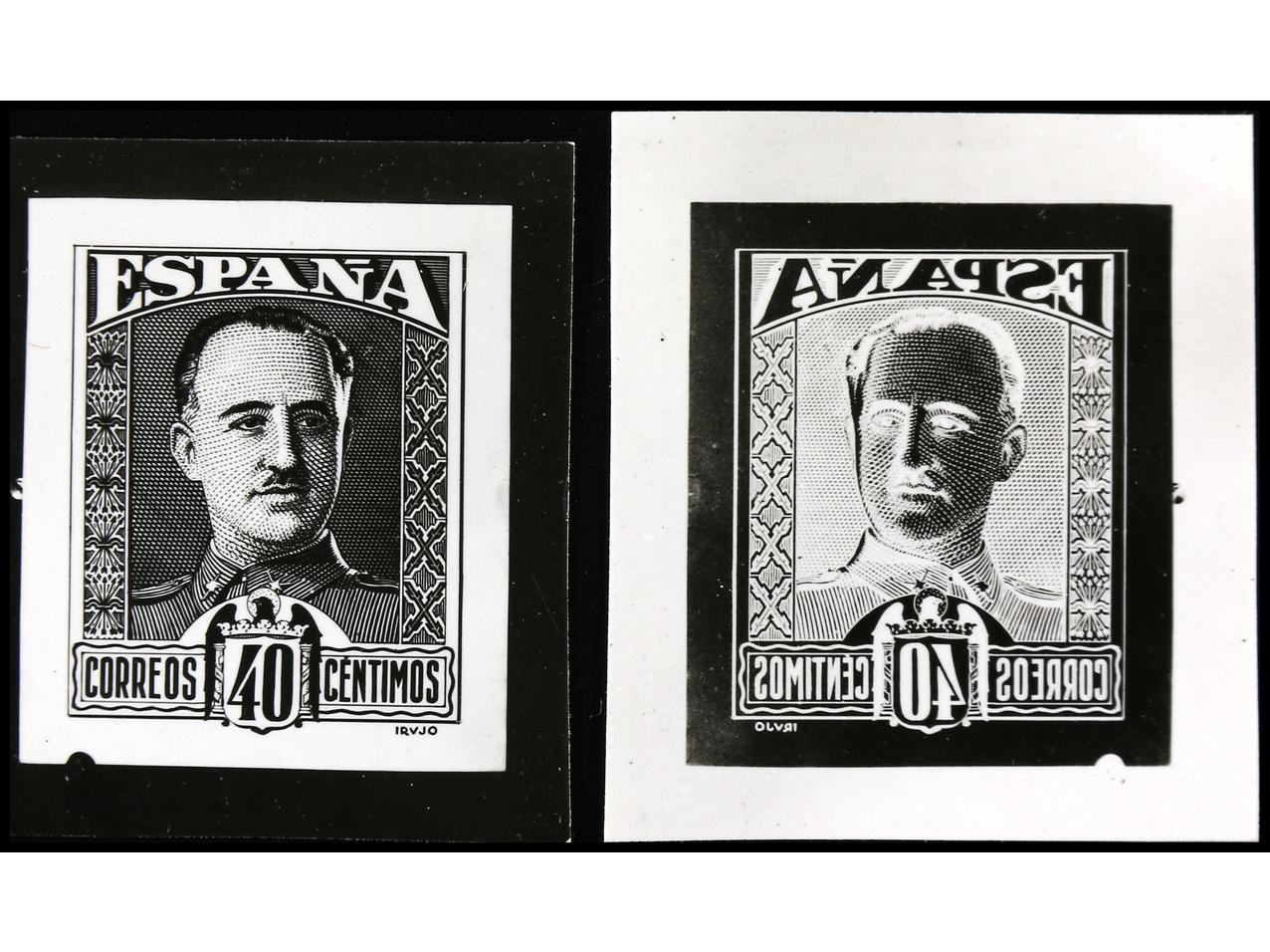ESPAÑA. PRUEBAS FOTOGRÁFICAS ORIGINALES. 40 cts. en positivo y negativo. Diseño no adoptado. (Image1) (Image2)