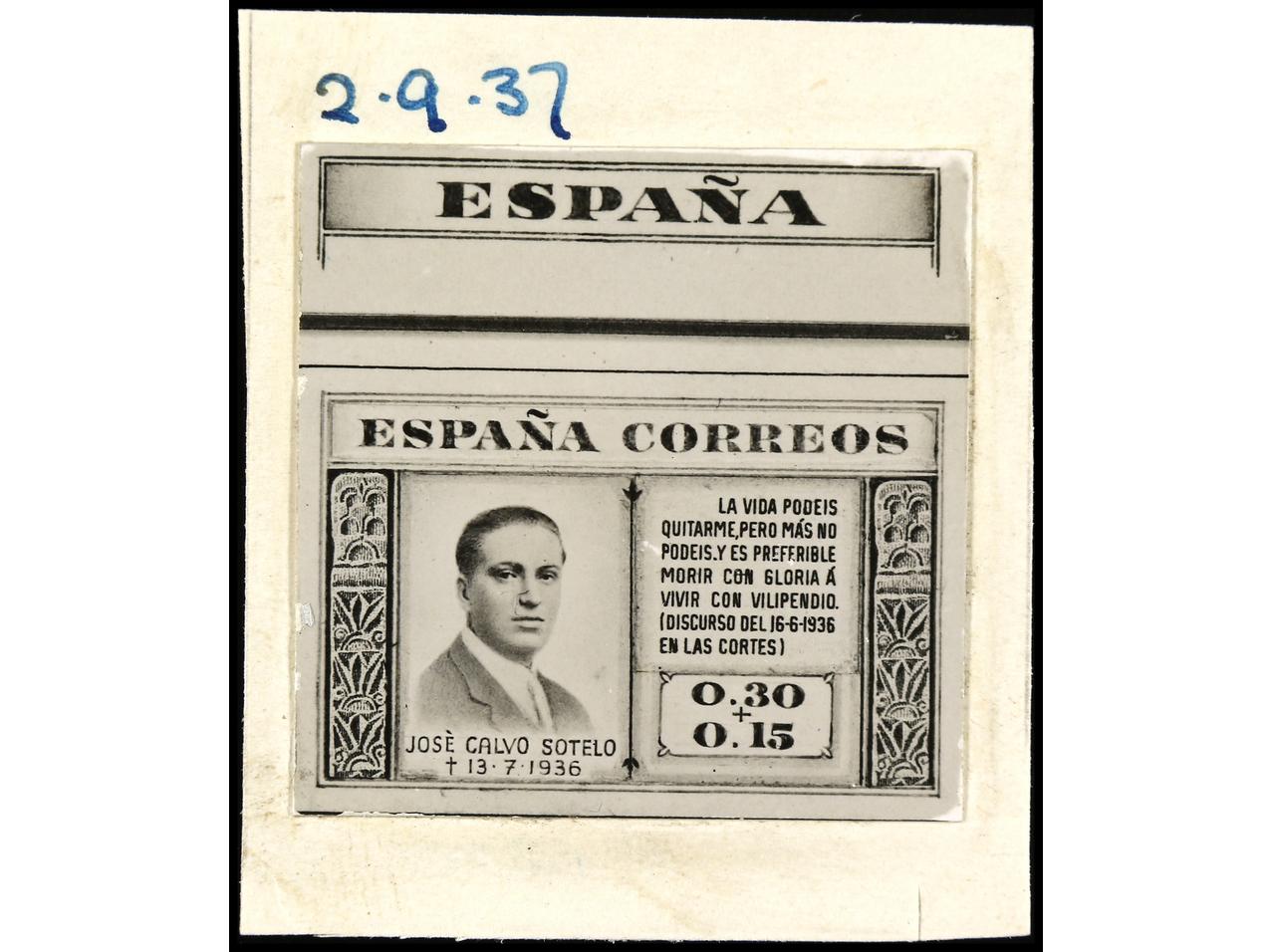 ESPAÑA. 1937. PRUEBA FOTOGRÁFICA ORIGINAL de la imprenta BRADBURY WILKINSON para un sello no adoptado de Calvo Sotelo de 0,30 + 0,15. (Image1)