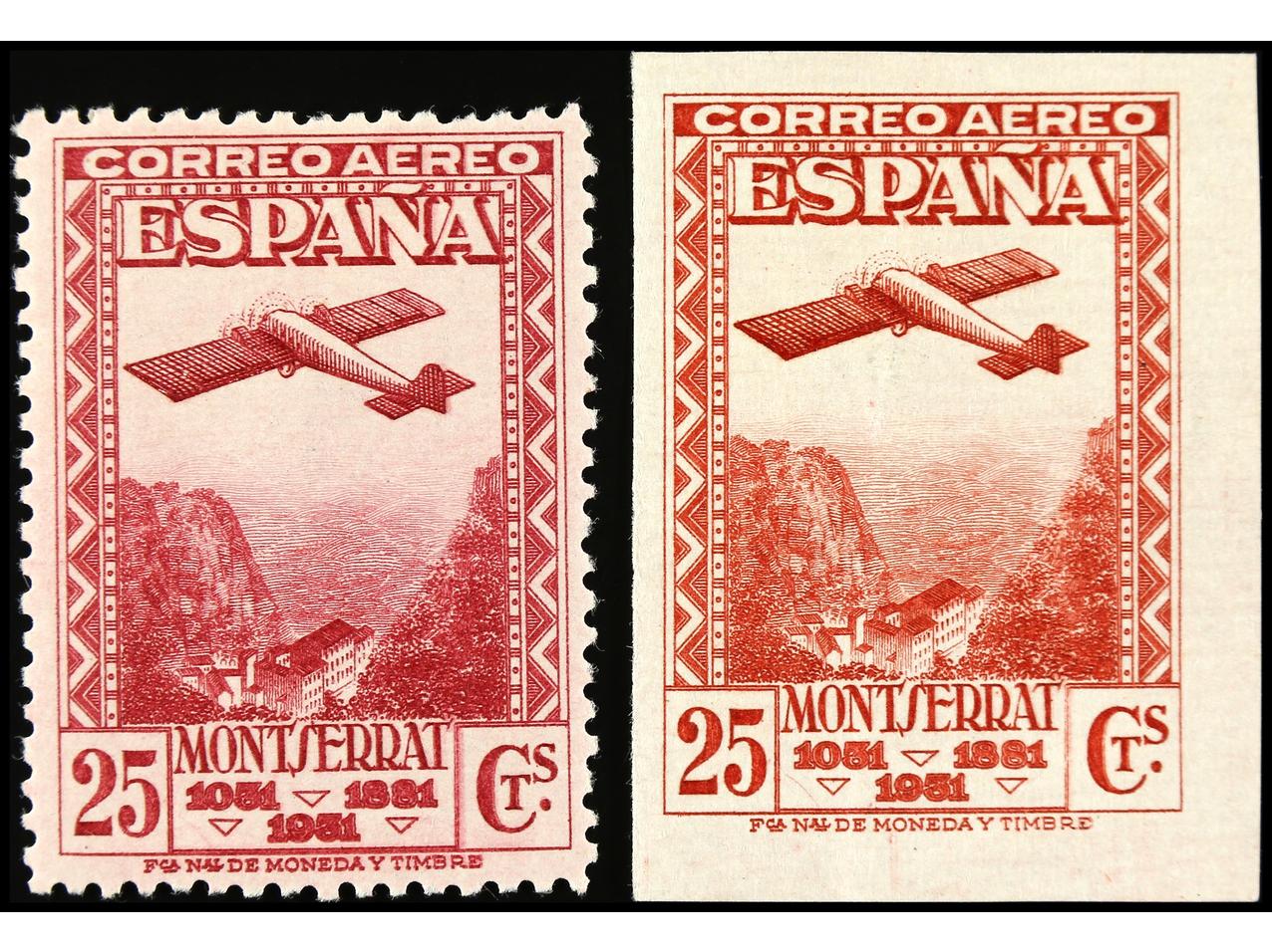 ESPAÑA. MONTSERRAT. ENSAYO DE PLANCHA. 25 cts. carmín vinoso (Gálvez CA 493). (Image1) (Image2)
