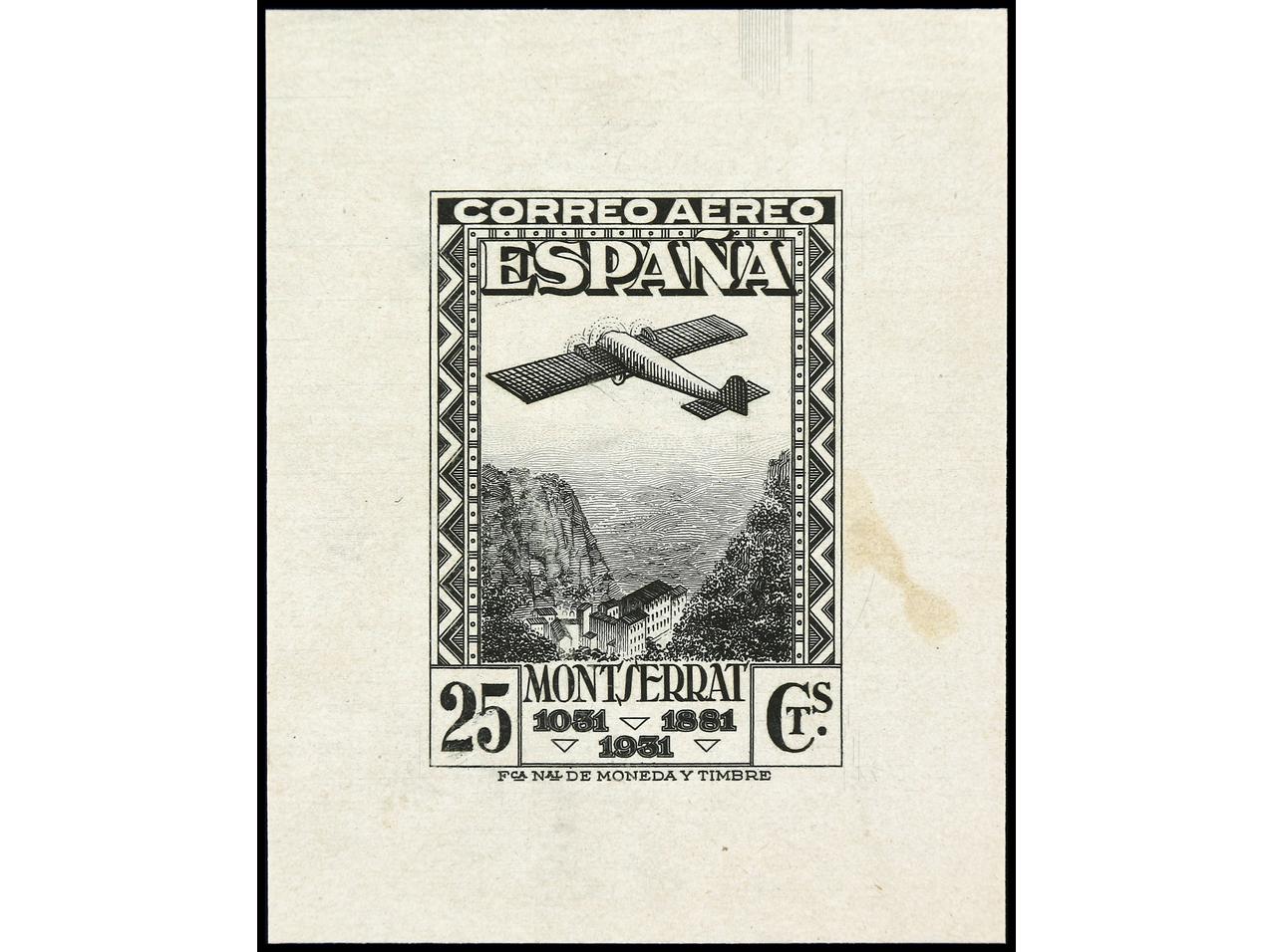 ESPAÑA. MONTSERRAT. PRUEBA DE PUNZÓN. 25 cts. negro. Leve mancha. RARA (Gálvez CA 487). (Image1)