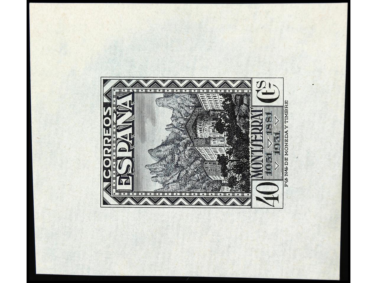 ESPAÑA. MONTSERRAT. PRUEBA DE PUNZÓN. 40 cts. azul. RARA. (Gálvez 2955). (Image1)