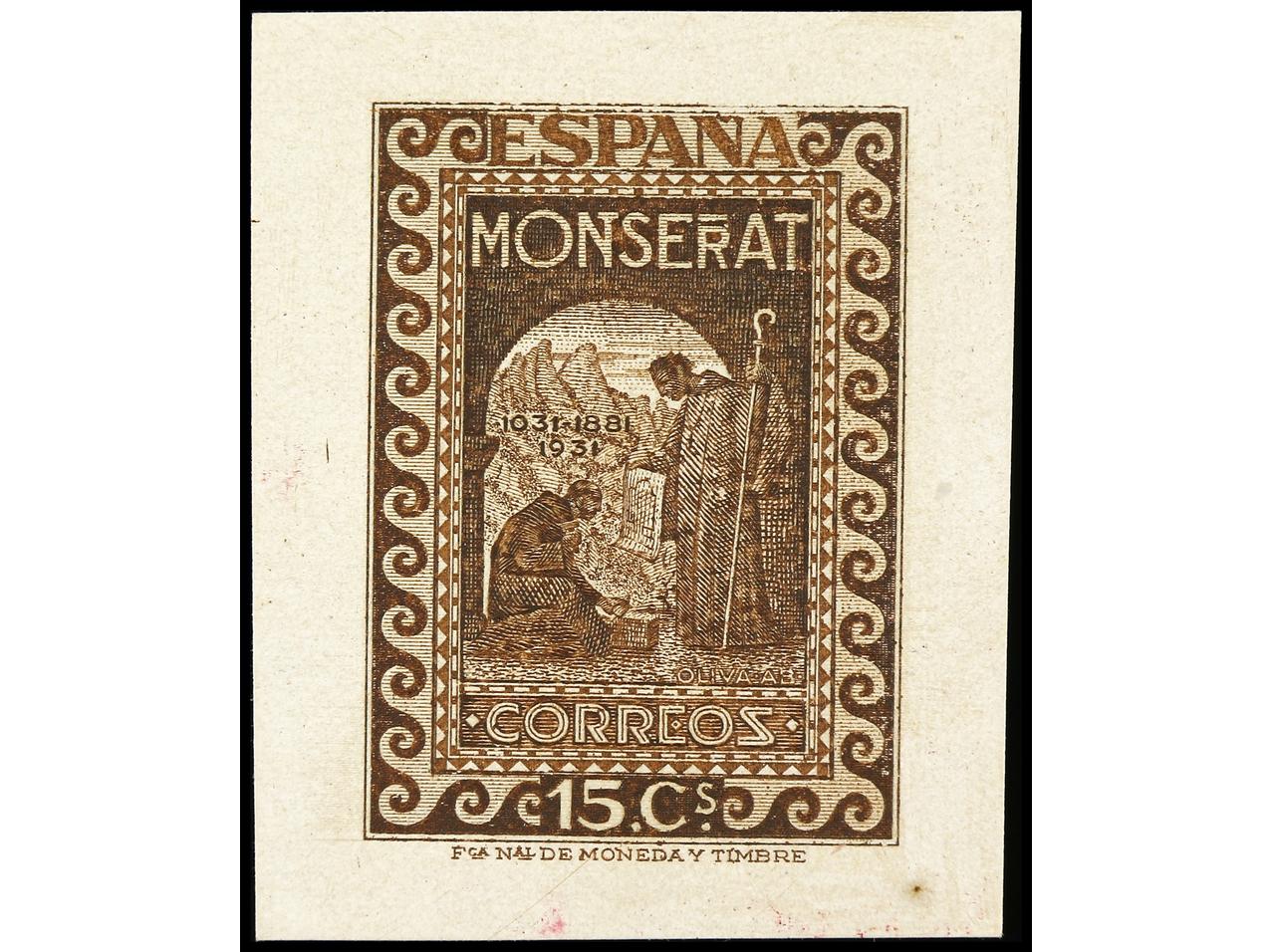 ESPAÑA. MONTSERRAT. PRUEBA DE PUNZÓN. 15 cts. castaño rojo. RARA. (Gálvez 2952). (Image1)