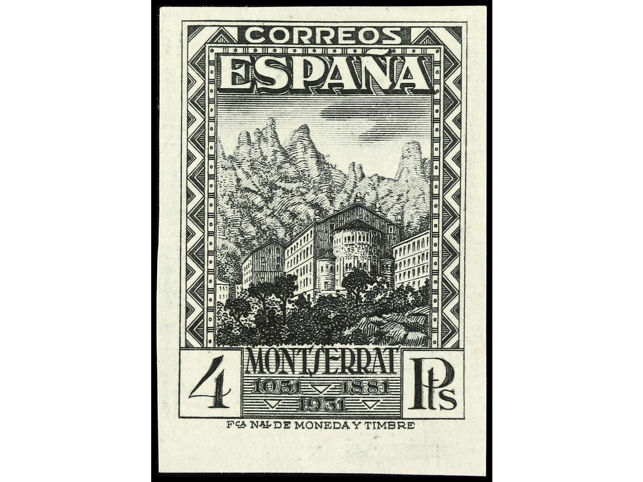 ESPAÑA. MONTSERRAT. ENSAYO DE COLOR. 4 pts. negro. (Gálvez 2972). (Image1)