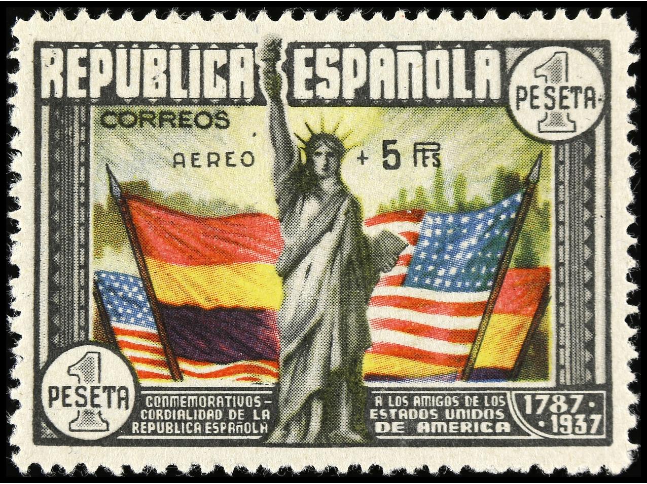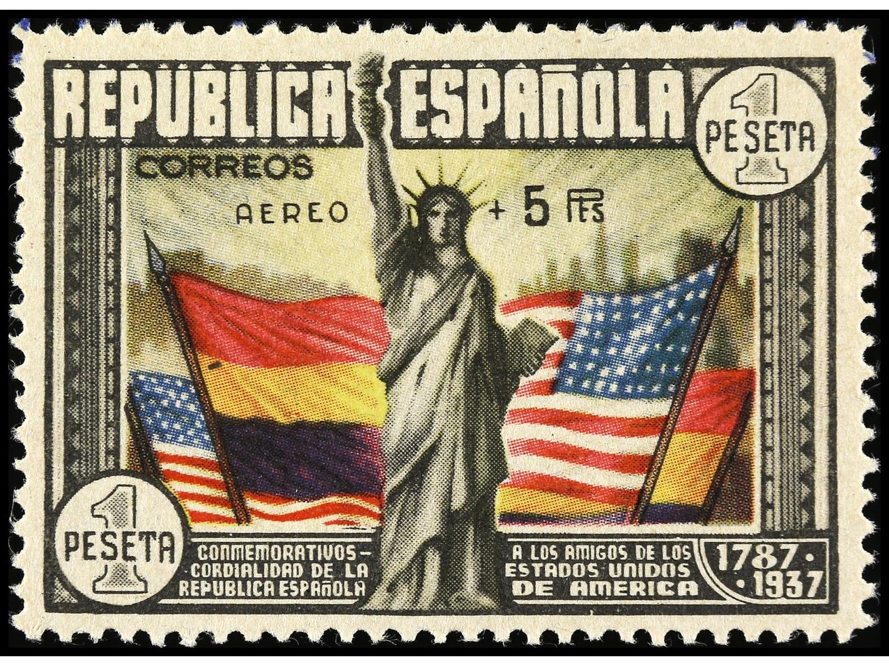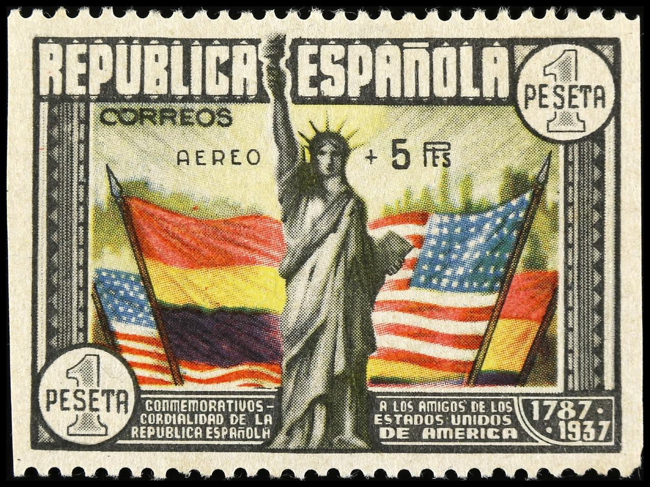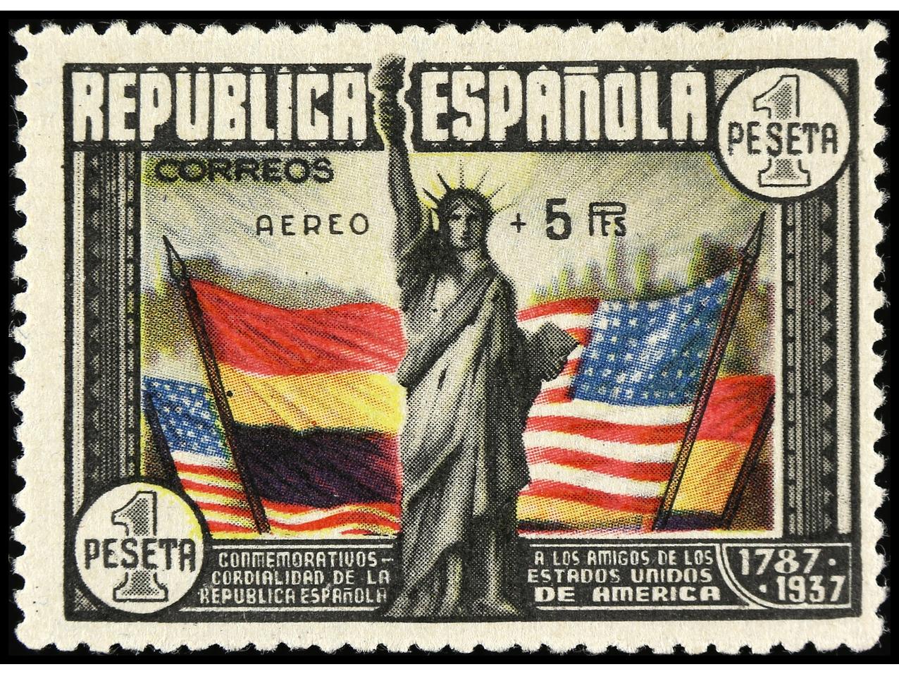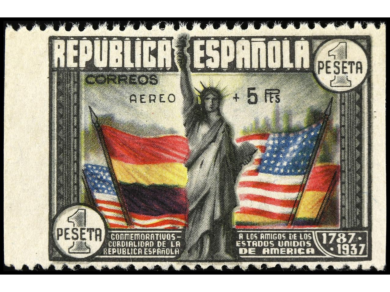 ESPAÑA. Aéreo + 5 pts. multicolor. Goma no original (not original gum). Ed.765. Cat. 350€. (Image1)