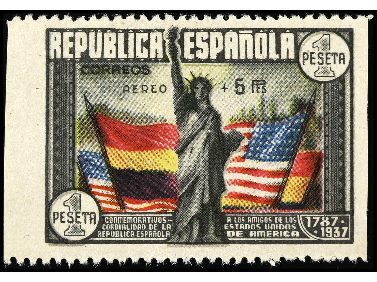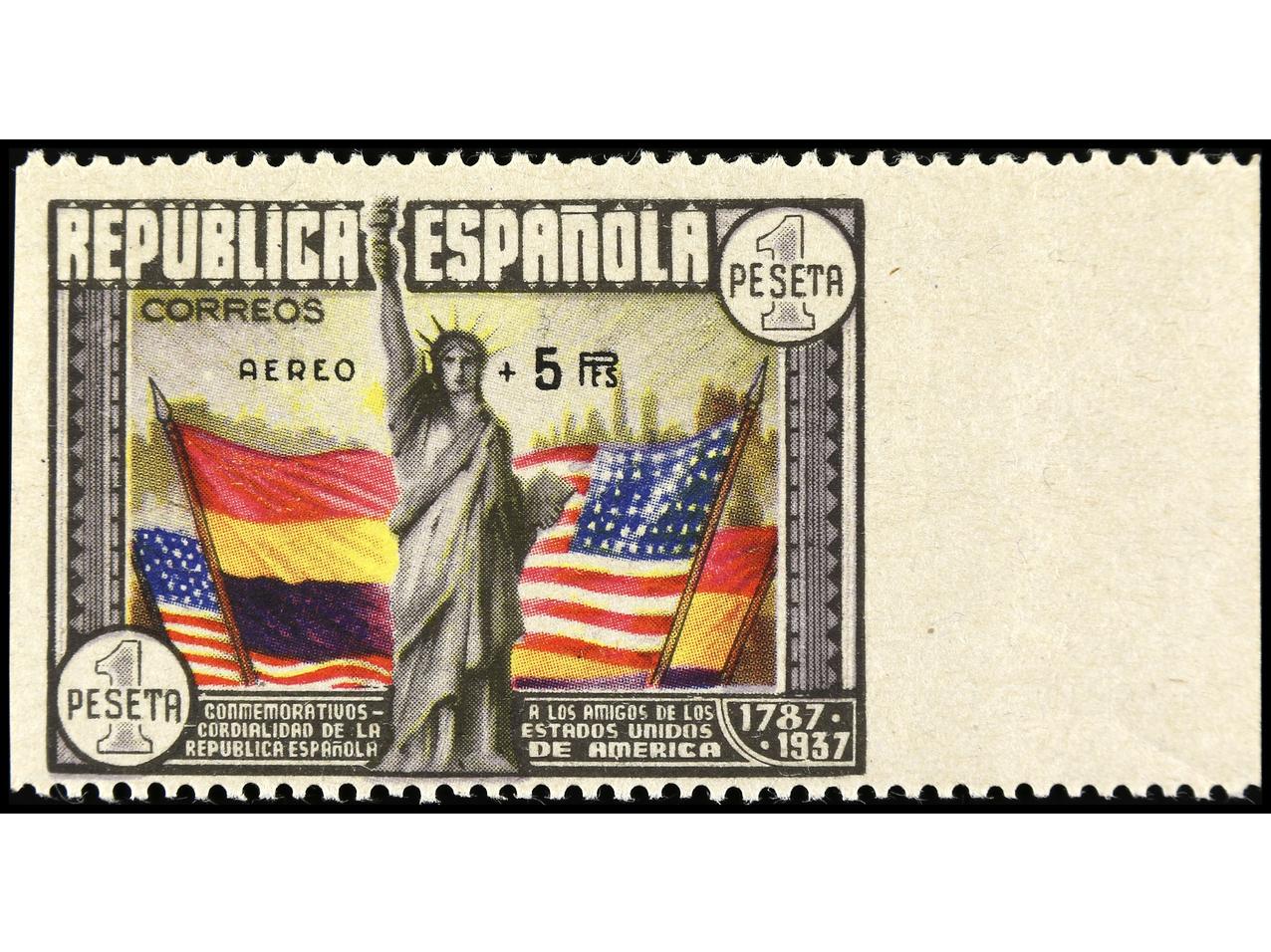 ESPAÑA. Aéreo + 5 pts. multicolor. SIN DENTAR. Goma oscura. Ed.765s. Cat. 700€. (Image1)