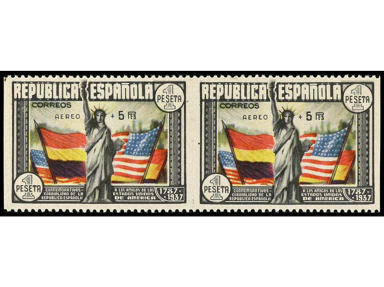 ESPAÑA. Aéreo + 5 pts. multicolor. Pareja horizontal SIN DENTADO VERTICAL. Firmado ROIG. Ed.765sph. Cat. +1.000€. (Image1)