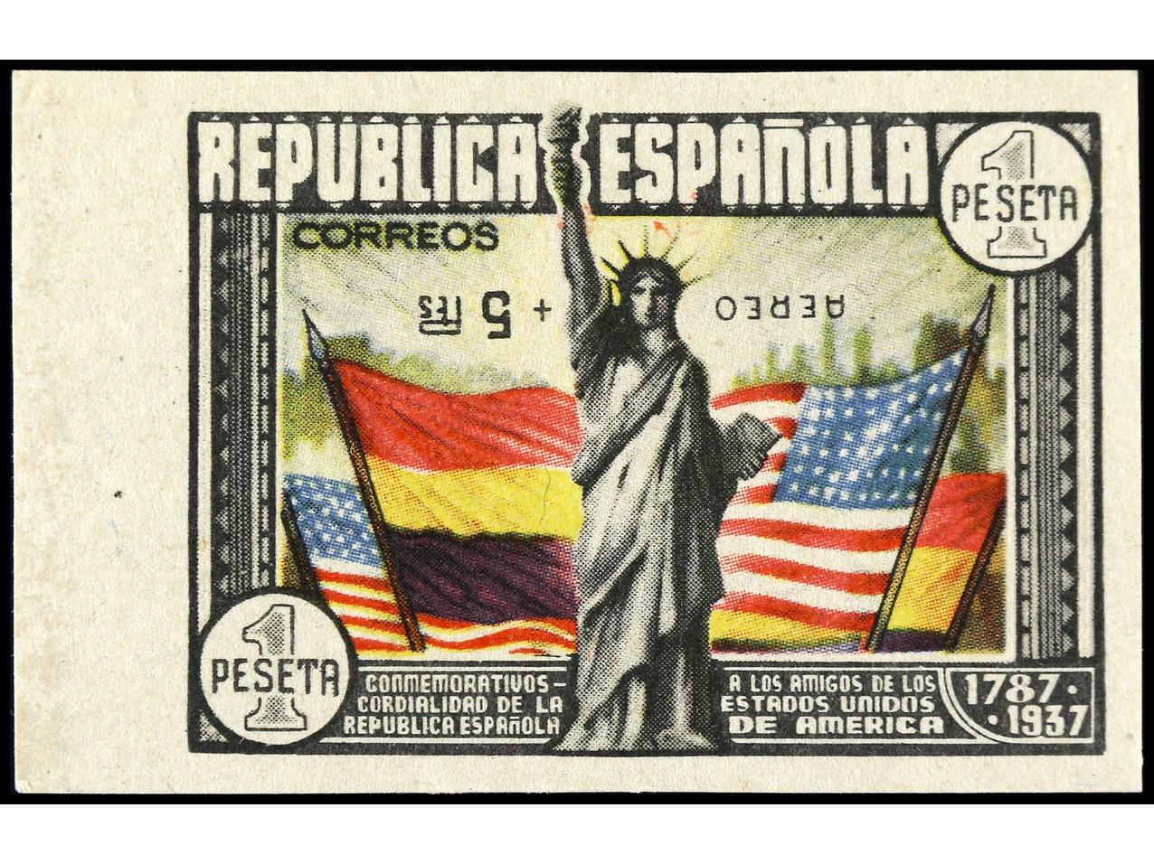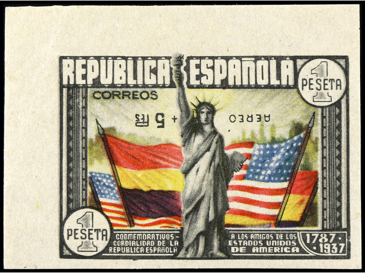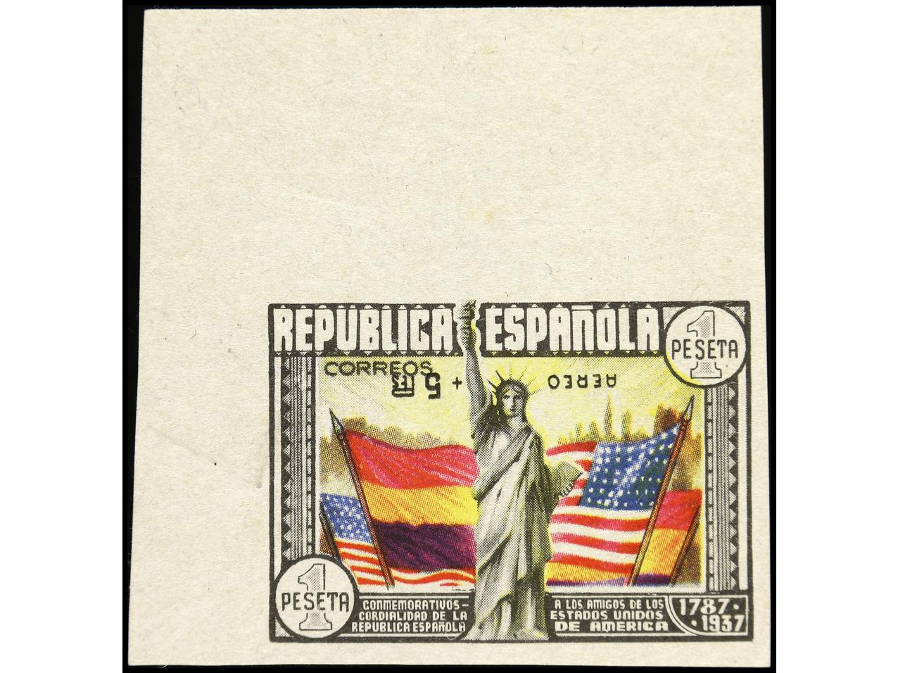 ESPAÑA. Aéreo + 5 pts. multicolor. SIN DENTAR y SOBRECARGA INVERTIDA. Firmado MONGE y ROIG. Ed.765his. Cat. 525€. (Image1)