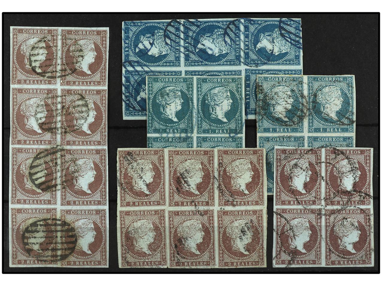 ESPAÑA. 1 real de bloques de cuatro y uno de seis. 2 reales bloques de cuatro, seis y ocho. Bonito Conjunto. Ed.41, 42. (Image1)