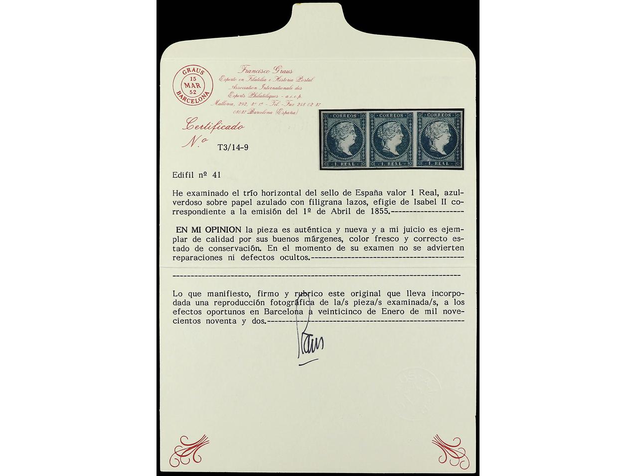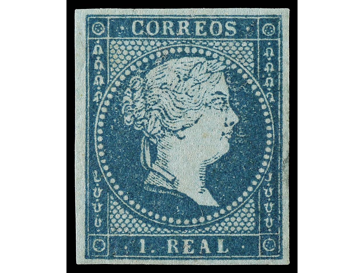 ESPAÑA. 1 real azul verdoso. LUJO. RARO en esta calidad. Cert. COMEX. Ed.41. Cat. +1.900€. (Image1) (Image2)