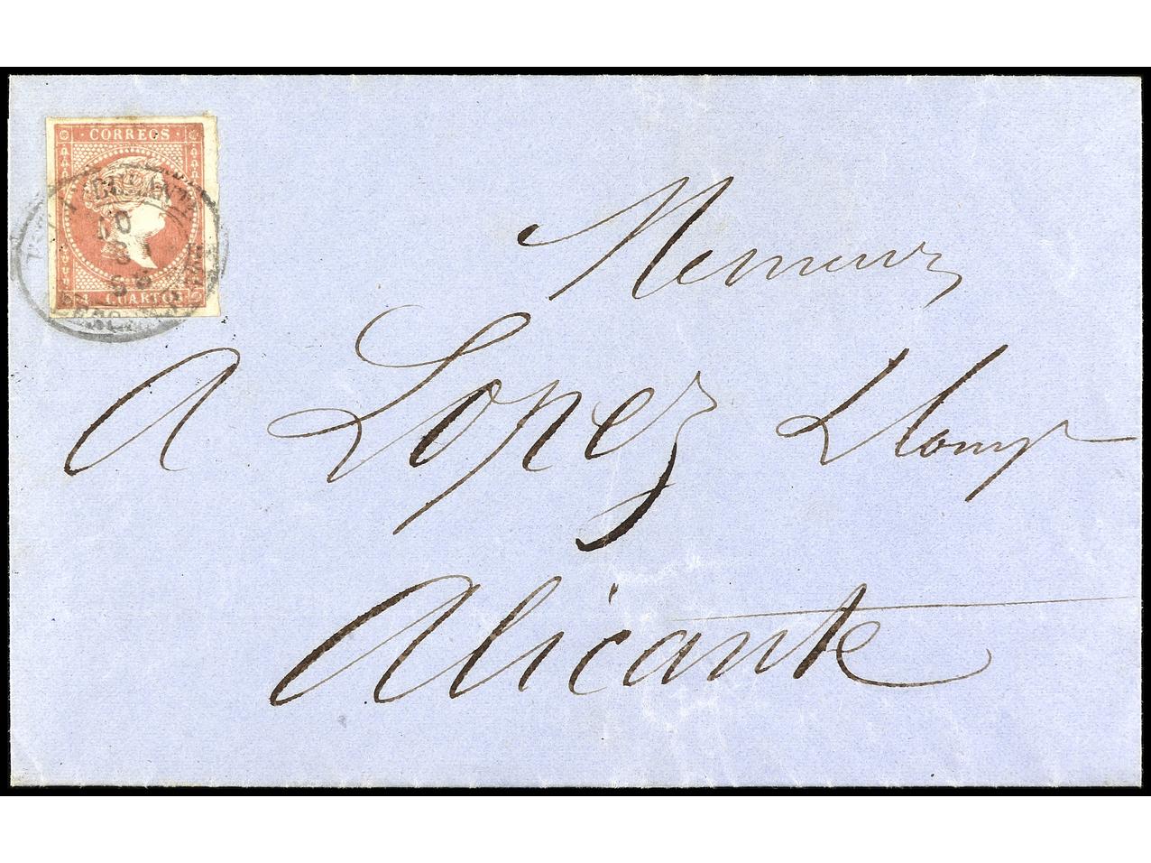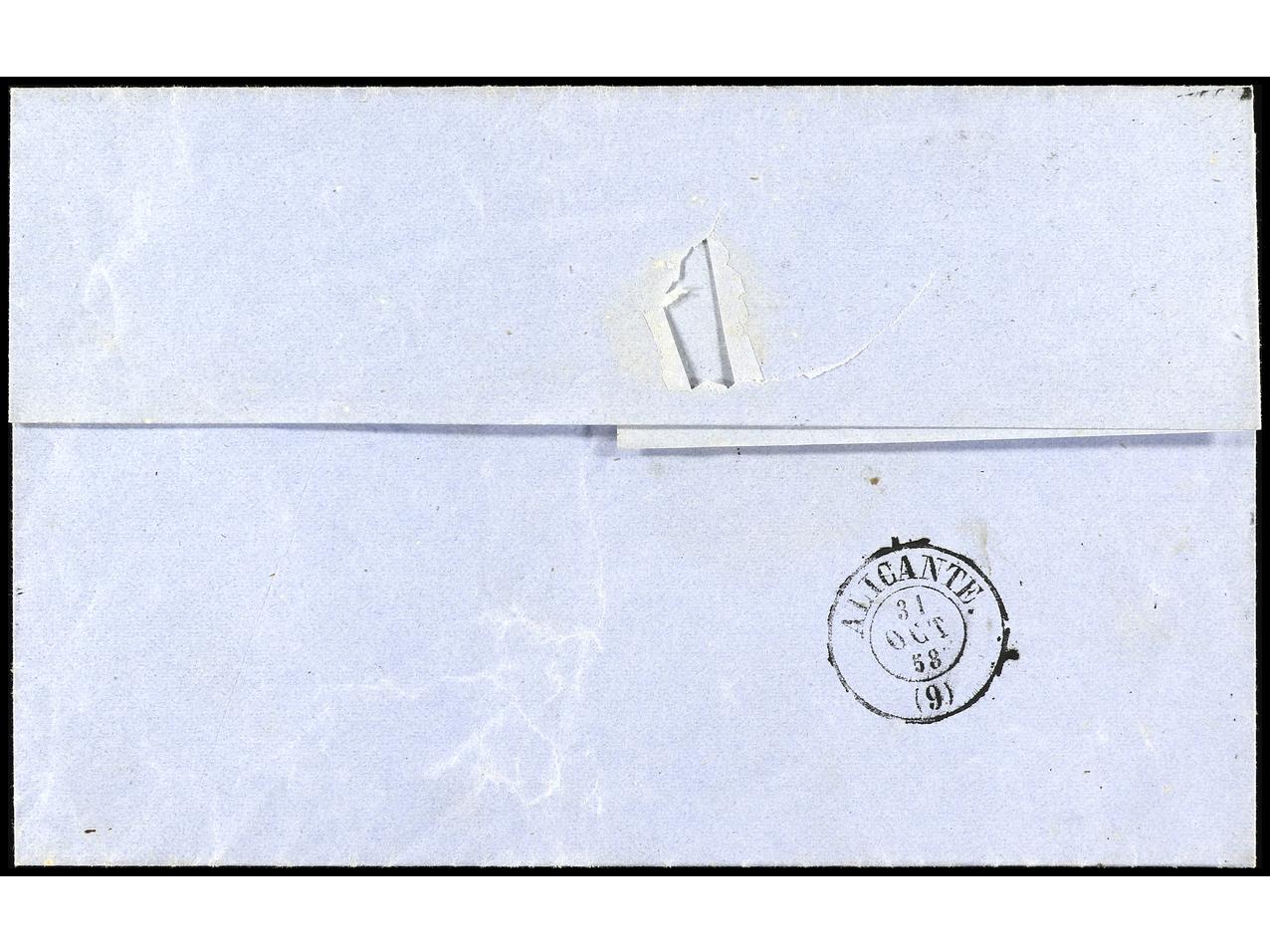 ESPAÑA. 1858. A ALICANTE. 4 c. mat. fechador AMBULANTE DESCENDENTE. Ed.48. (Image1) (Image2)