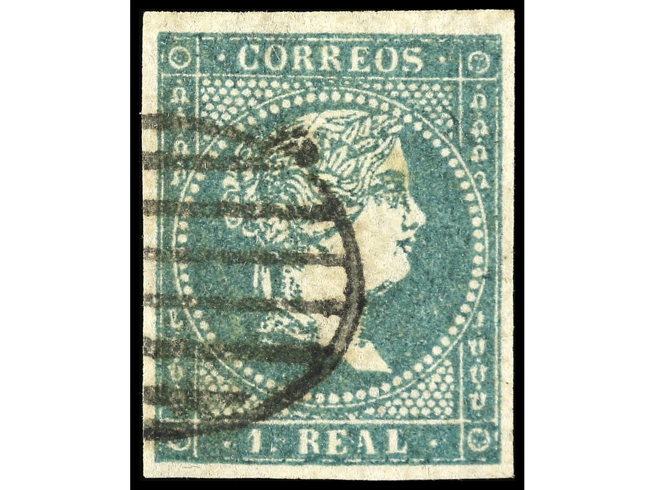 ESPAÑA. 1 real azul verdoso. LUJO. Ed.45. Cat. 260€. (Image1)