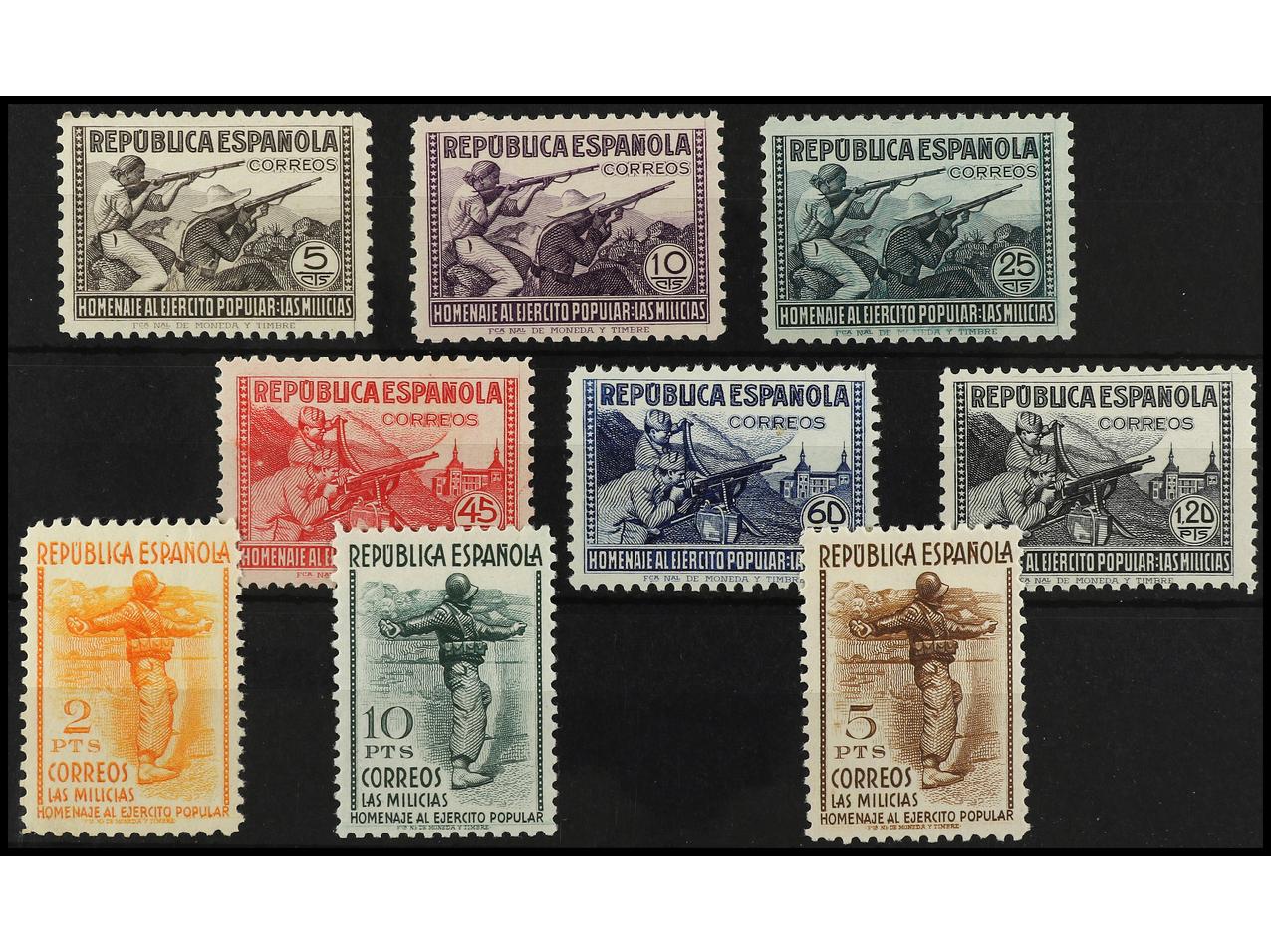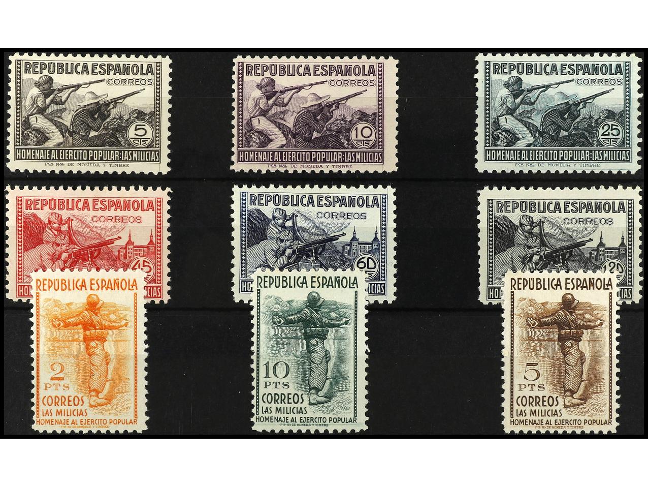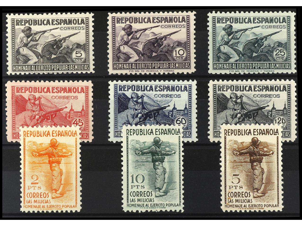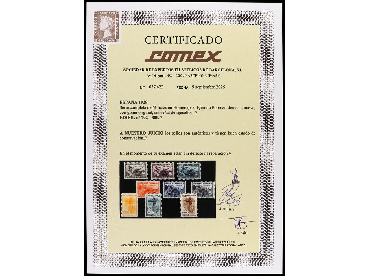 ESPAÑA. SERIE COMPLETA, 9 valores. Todos los valores centrados excepcionales. Muy rara en esta calidad. LUJO. Cert. COMEX. Ed.792/800. (Image1) (Image2)