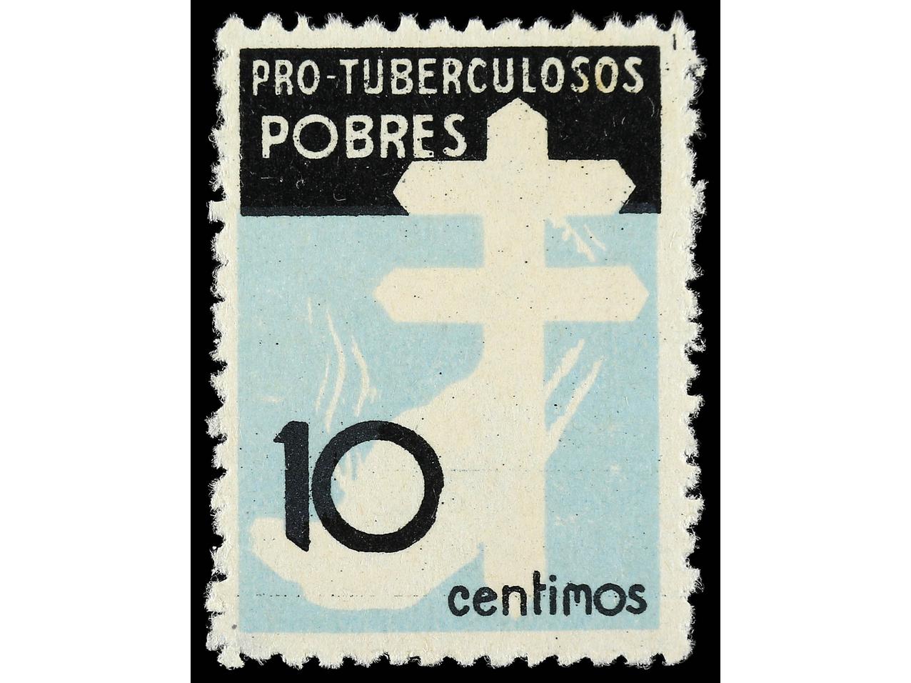 ESPAÑA. 10 cts. negro y azul celeste. SIN EL COLOR ROJO DE LA CRUZ. LUJO. Ed.840ef. Cat. +142€. (Image1)