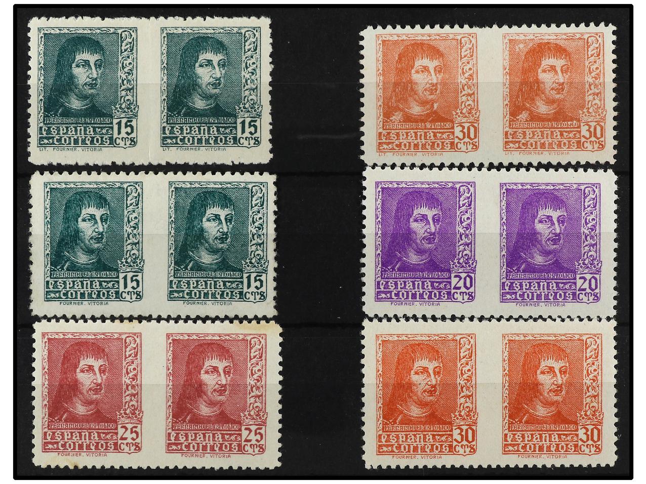 ESPAÑA. SERIE COMPLETA, 6 valores en PAREJAS HORIZONTALES SIN PERFORADO CENTRAL. Ed 842 leves adelgazamientos y Ed 843 ligeras sombras del triempo. Ed.841/4Asph. Cat. +484€. (Image1) (Image2)