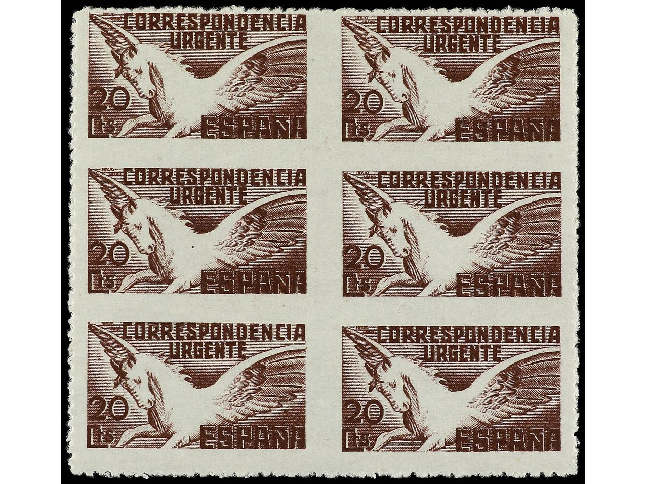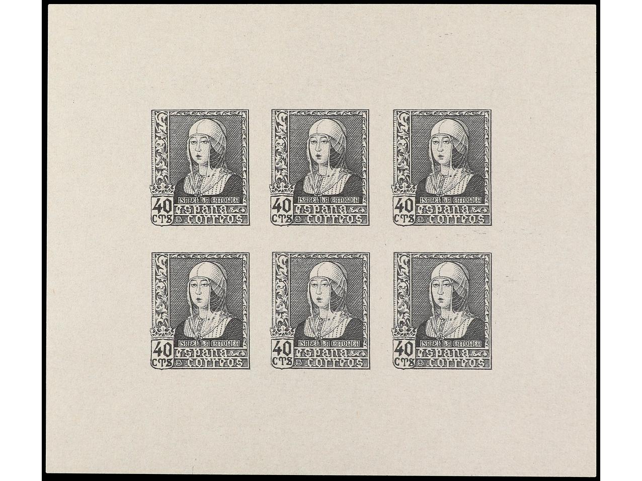 ESPAÑA. BLOQUE REPORTE. 40 cts. negro. Bloque de seis (Gálvez 3556). Ed.858. (Image1)