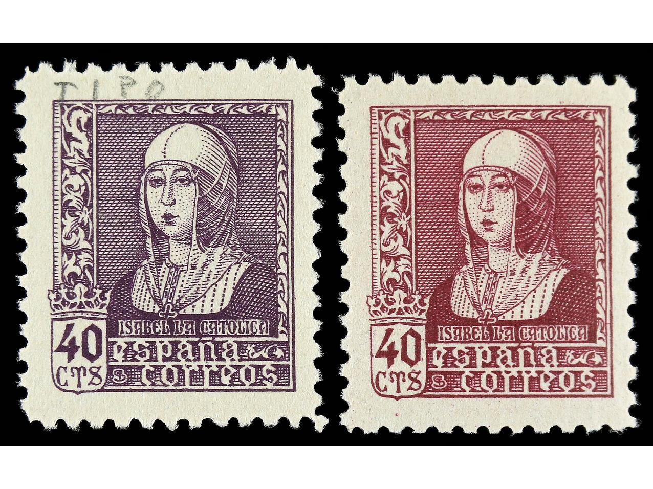 ESPAÑA. 40 cts. lila rosa. ERROR DE COLOR. No reseñado. MUY RARO y de LUJO. Ed.858ec. (Image1) (Image2)