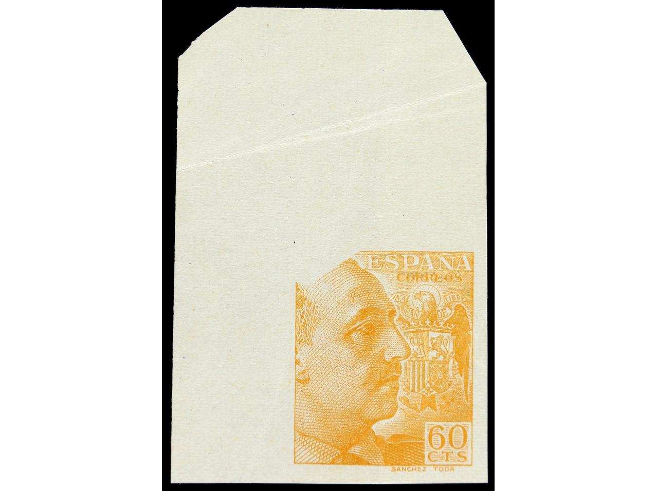 ESPAÑA. 60 cts. amarillo. CAMBIO DE COLOR. Variedad impresión por PLIEGUE DEL PAPEL. Dobleces. Ed.873ccs. (Image1)