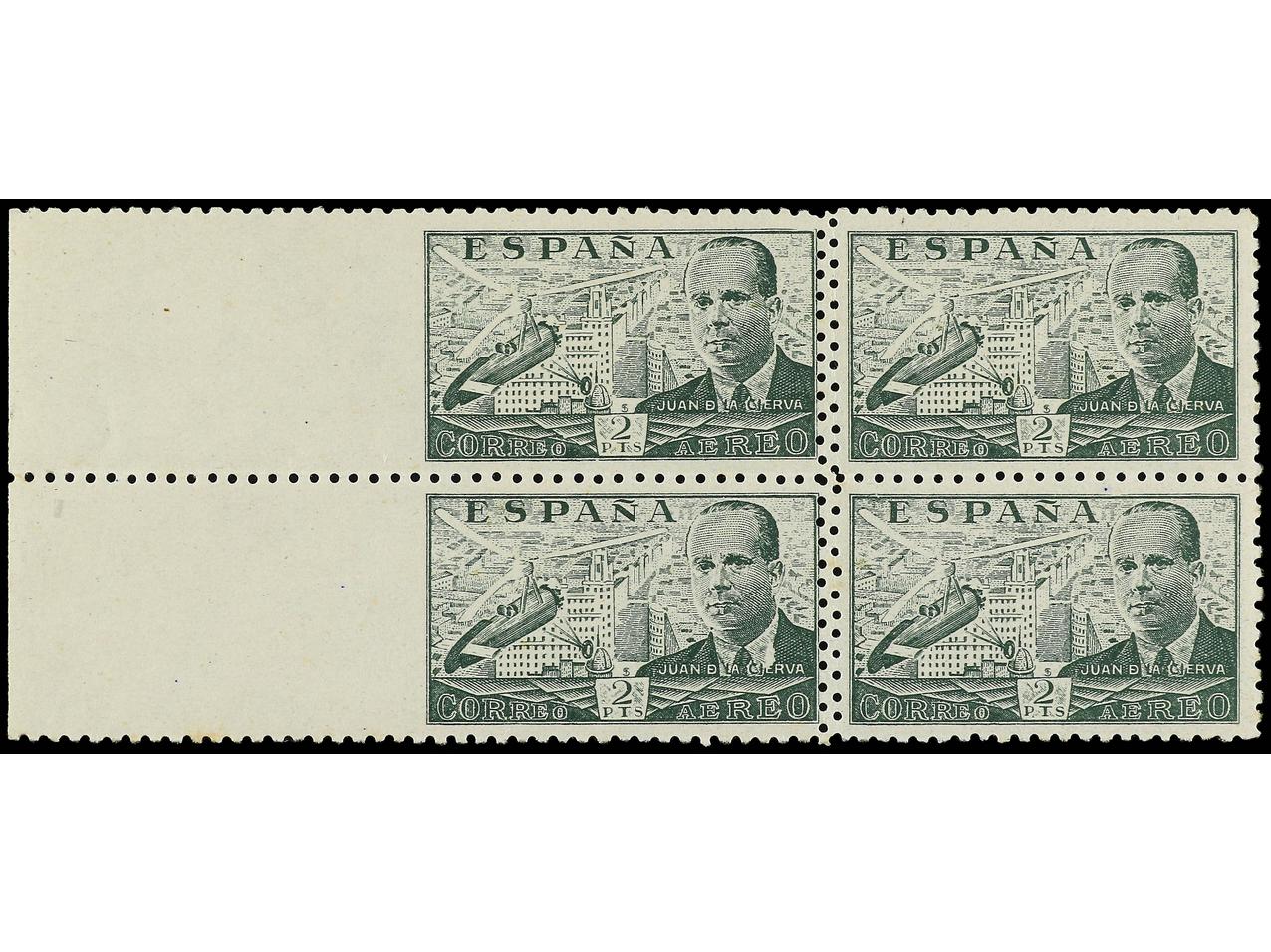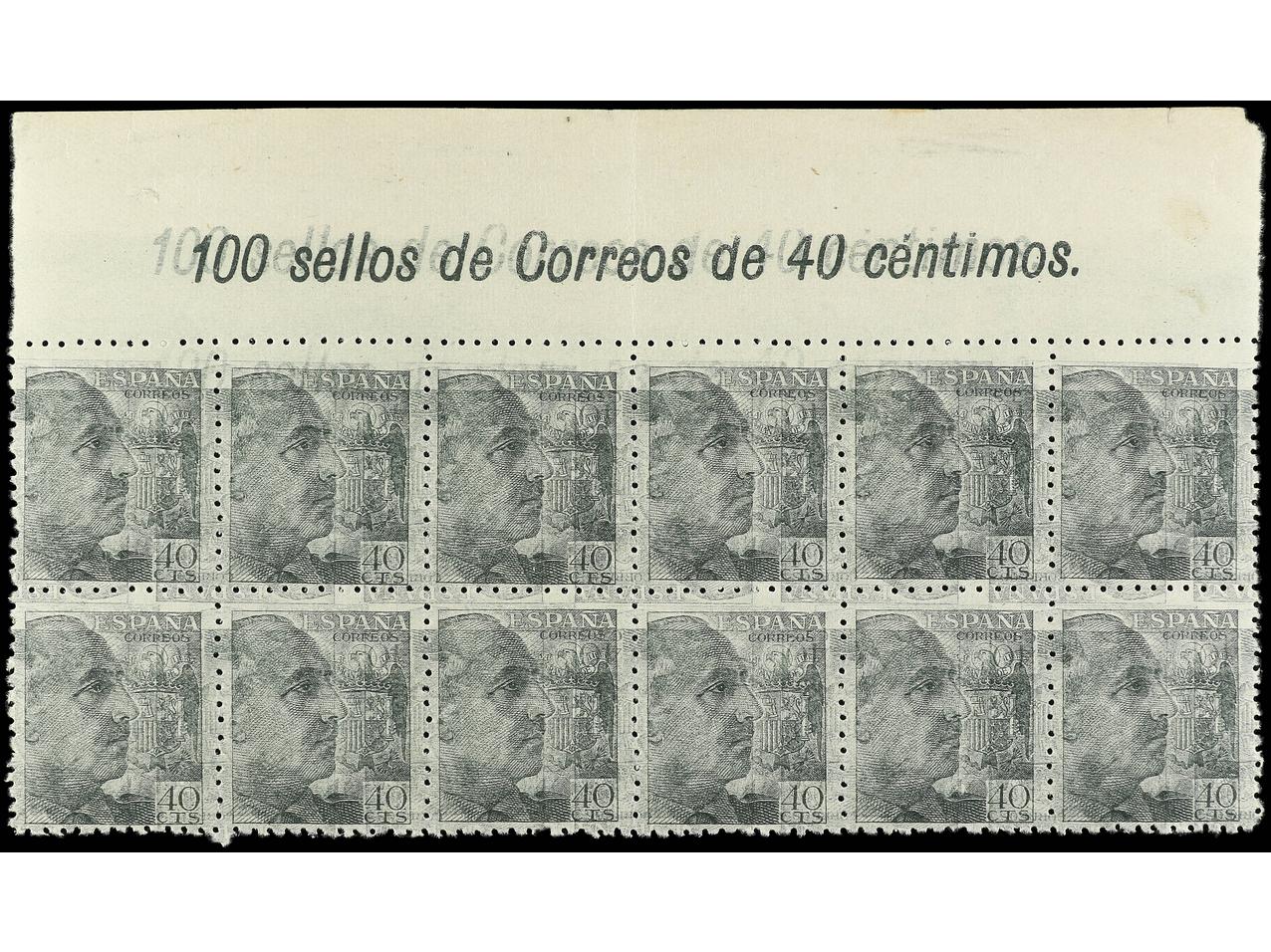 ESPAÑA. 40 cts. verde grisáceo. Bloque de 12 TRIPLE IMPRESIÓN (una invertida). RARÍSIMO y NO RESEÑADO. Ed.925 (12). (Image1)