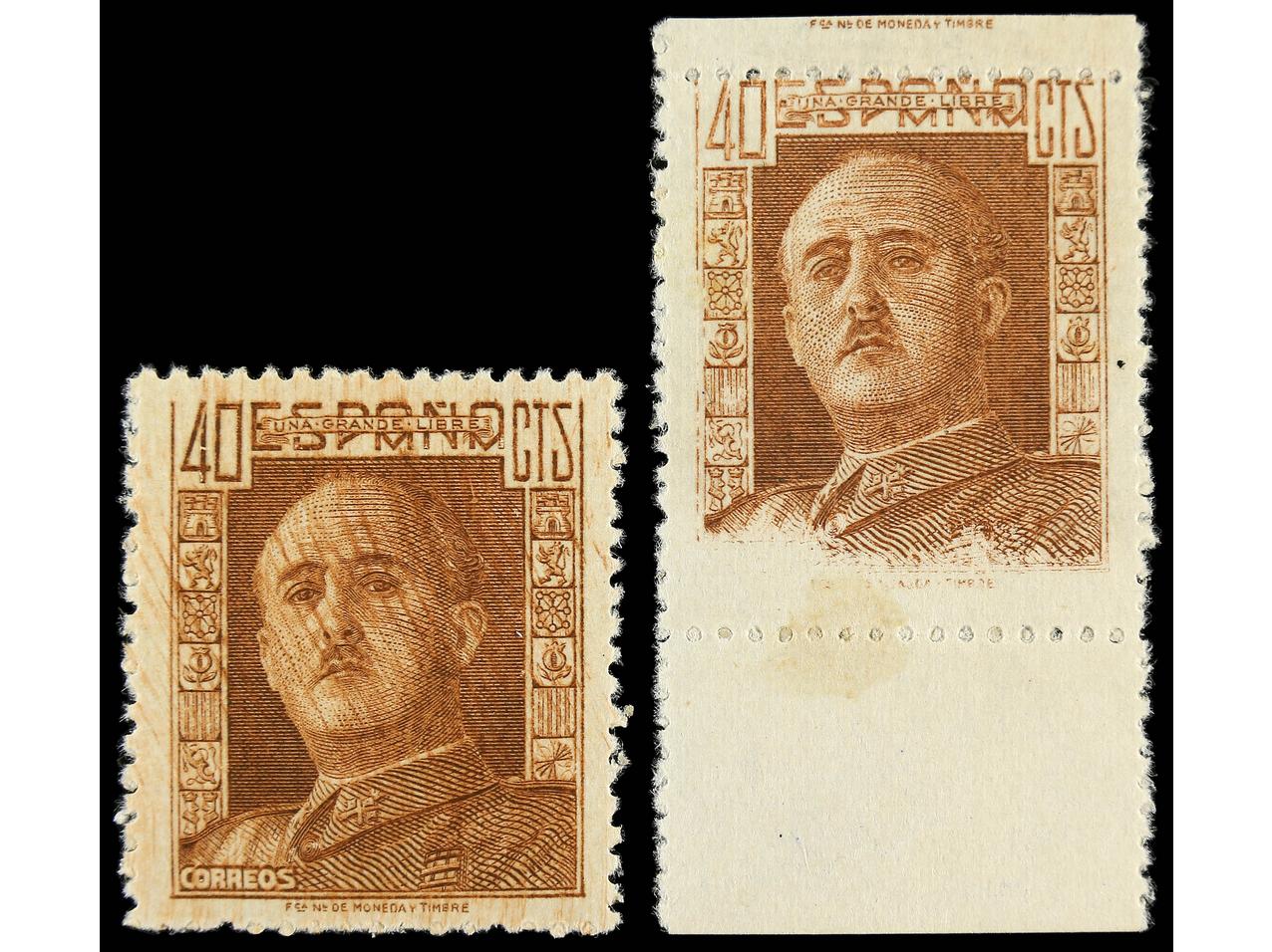 ESPAÑA. 40 cts. castaño rojizo. 2 ejemplares con VARIEDAD DE IMPRESIÓN. Ed.953. (Image1) (Image2)