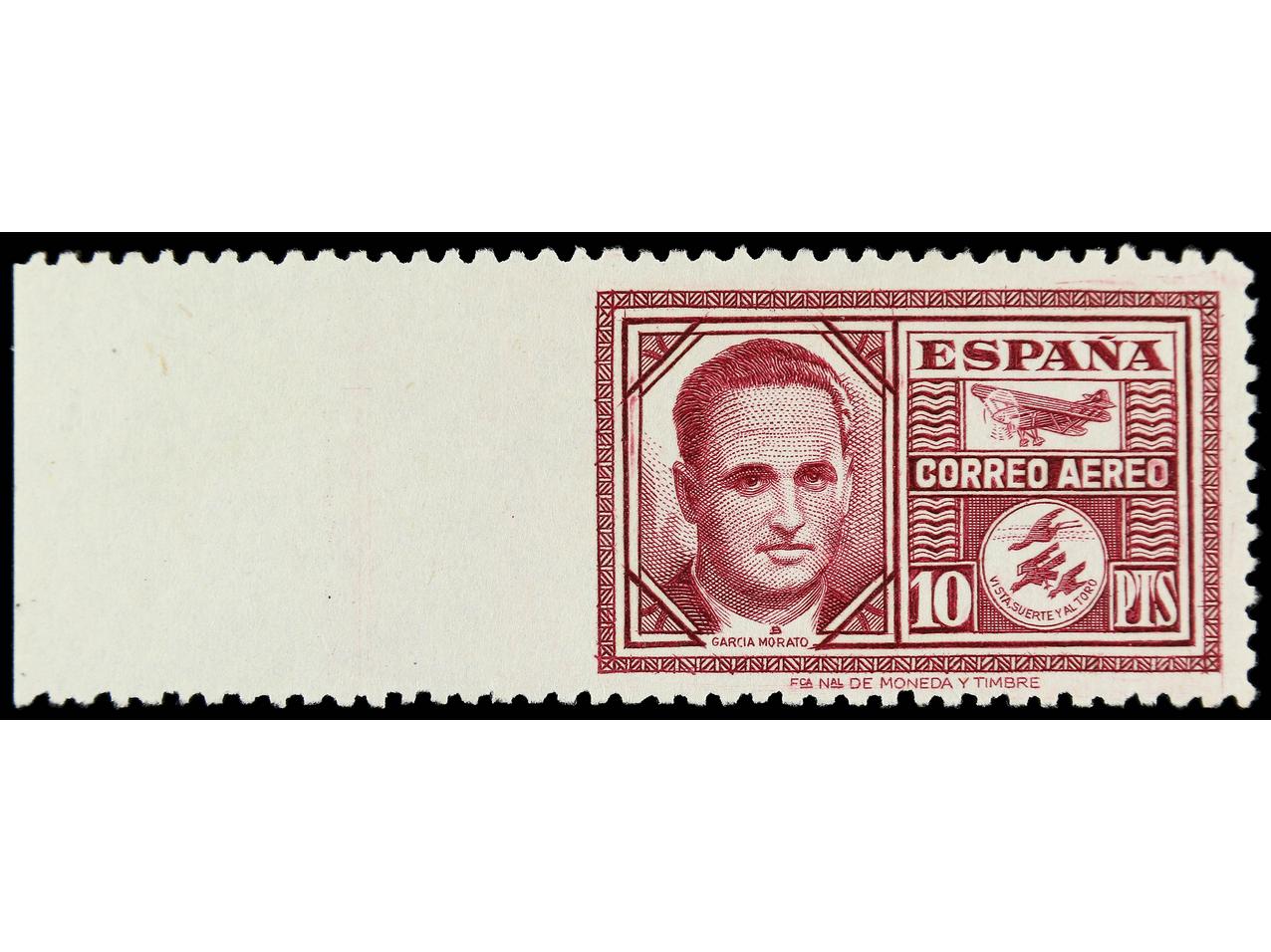 ESPAÑA. 10 pts carmín. SIN DENTAR MARGEN IZQUIERDO. Ed.992smi. Cat. 165€. (Image1)