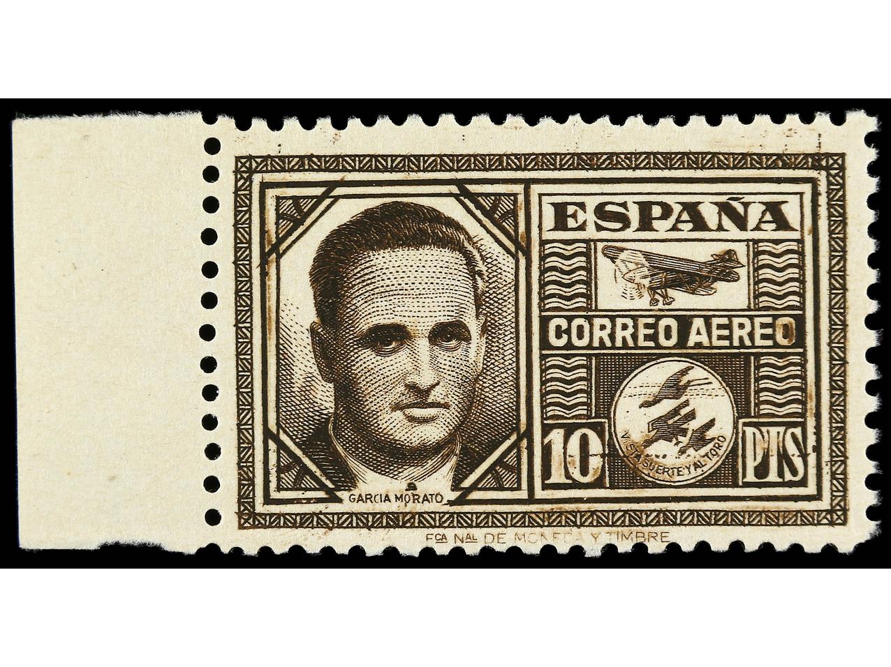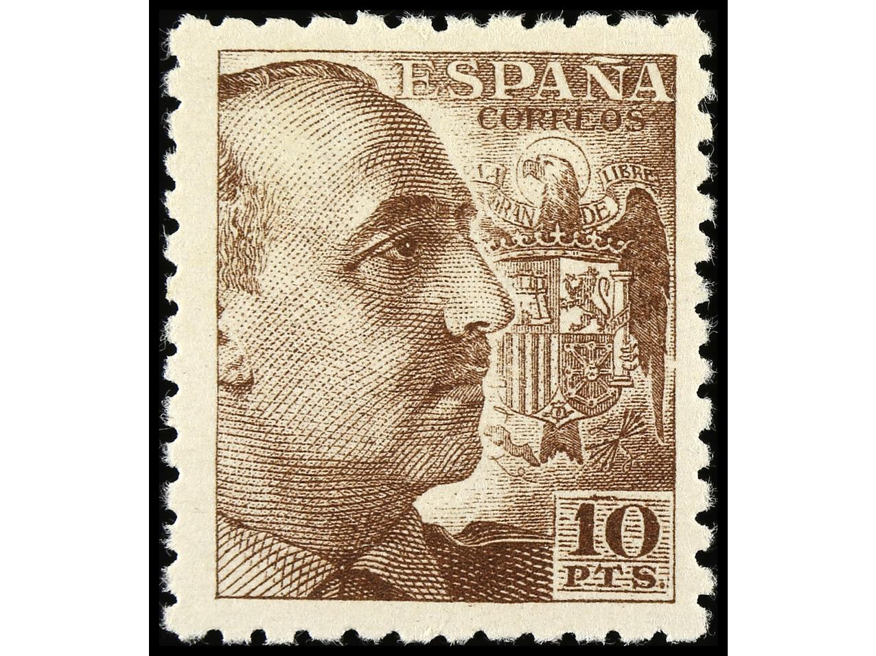 ESPAÑA. 10 pts. castaño negruzco. COLOR CAMBIADO. RARO. Ed.992cc. Cat. 280€. (Image1)
