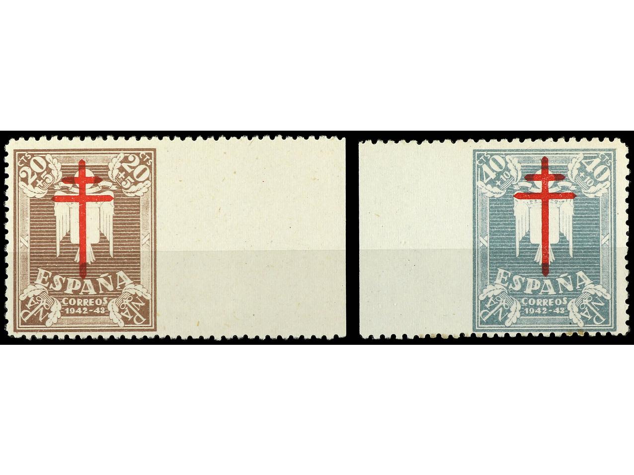 ESPAÑA. 20 + 5 cts. castaño SIN DENTAR MARGEN DERECHO y 40 + 10 gris SIN DENTAR MARGEN IZQUIERDO. RAROS. Ed.958smd y 959smi. (Image1) (Image2)