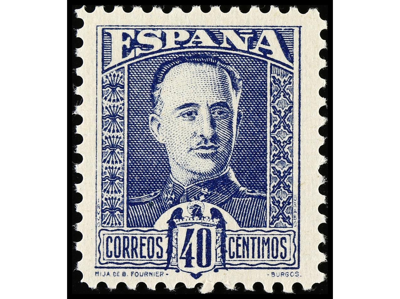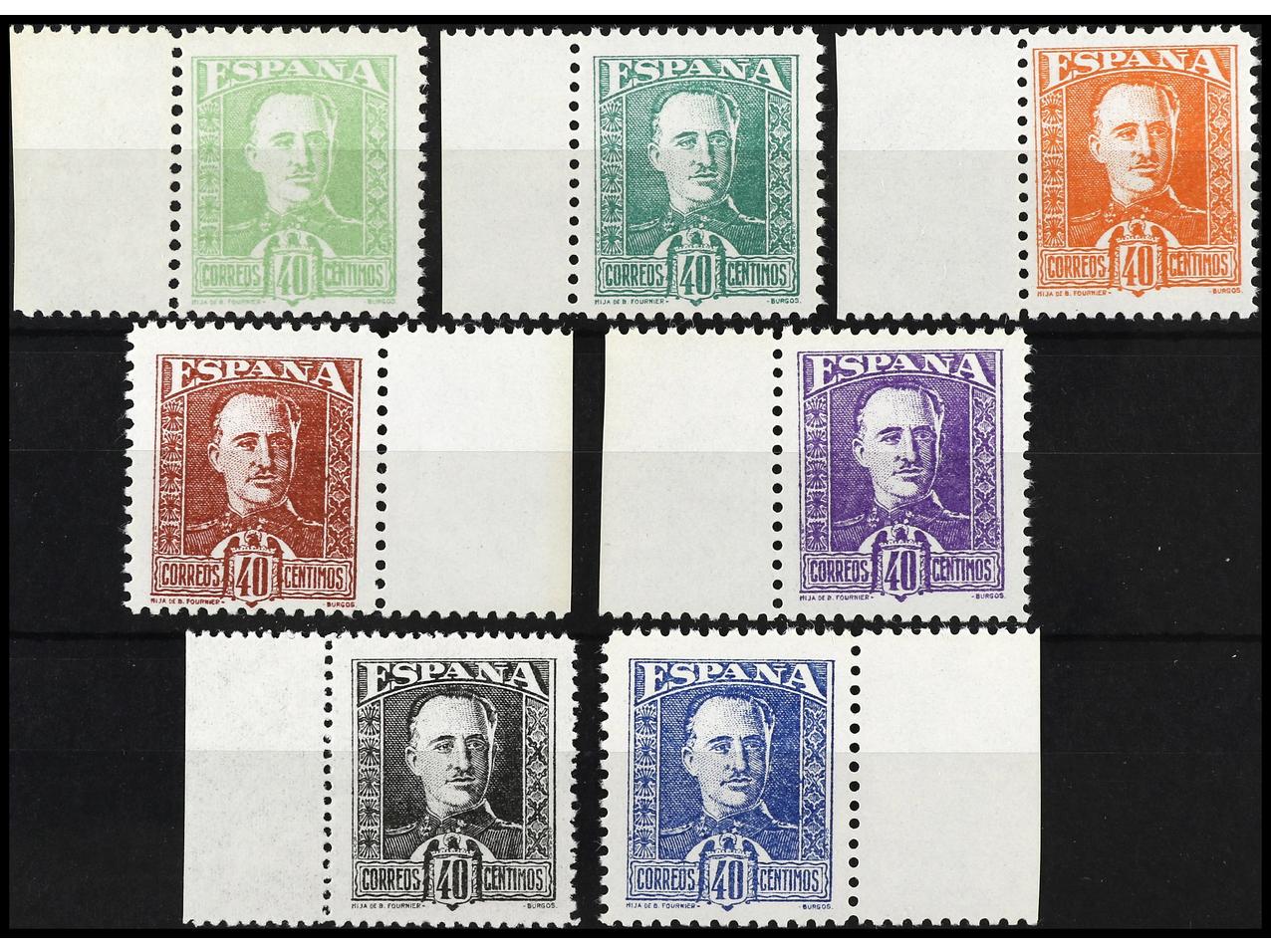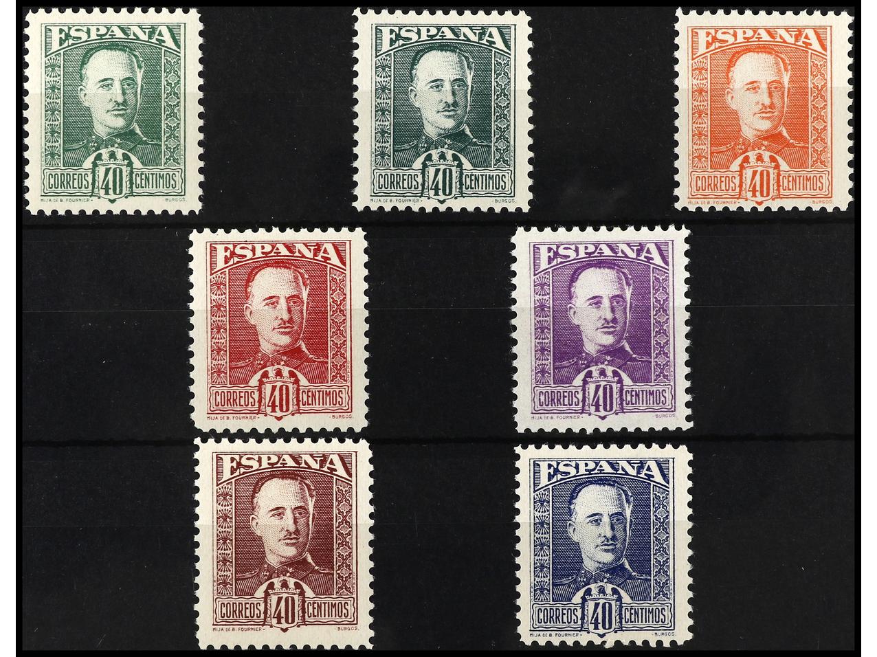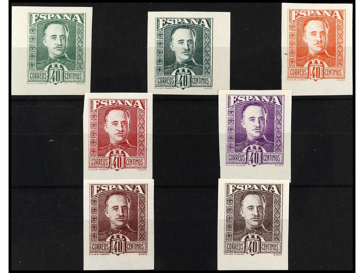 ESPAÑA. 1937. GENERAL FRANCO. 40 cts. 7 ENSAYOS DE COLOR en colores distintos. Reimpresión. (Image1) (Image2)