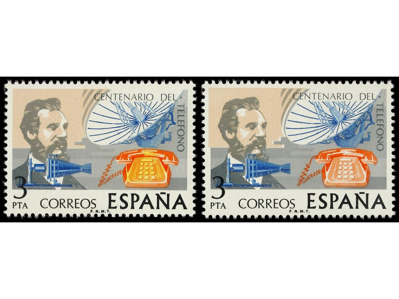 ESPAÑA. 3 ptas. multicolor. ERROR DE IMPRESIÓN, teléfono rojo y amarillo. Ed.2311ed. (Image1) (Image2)