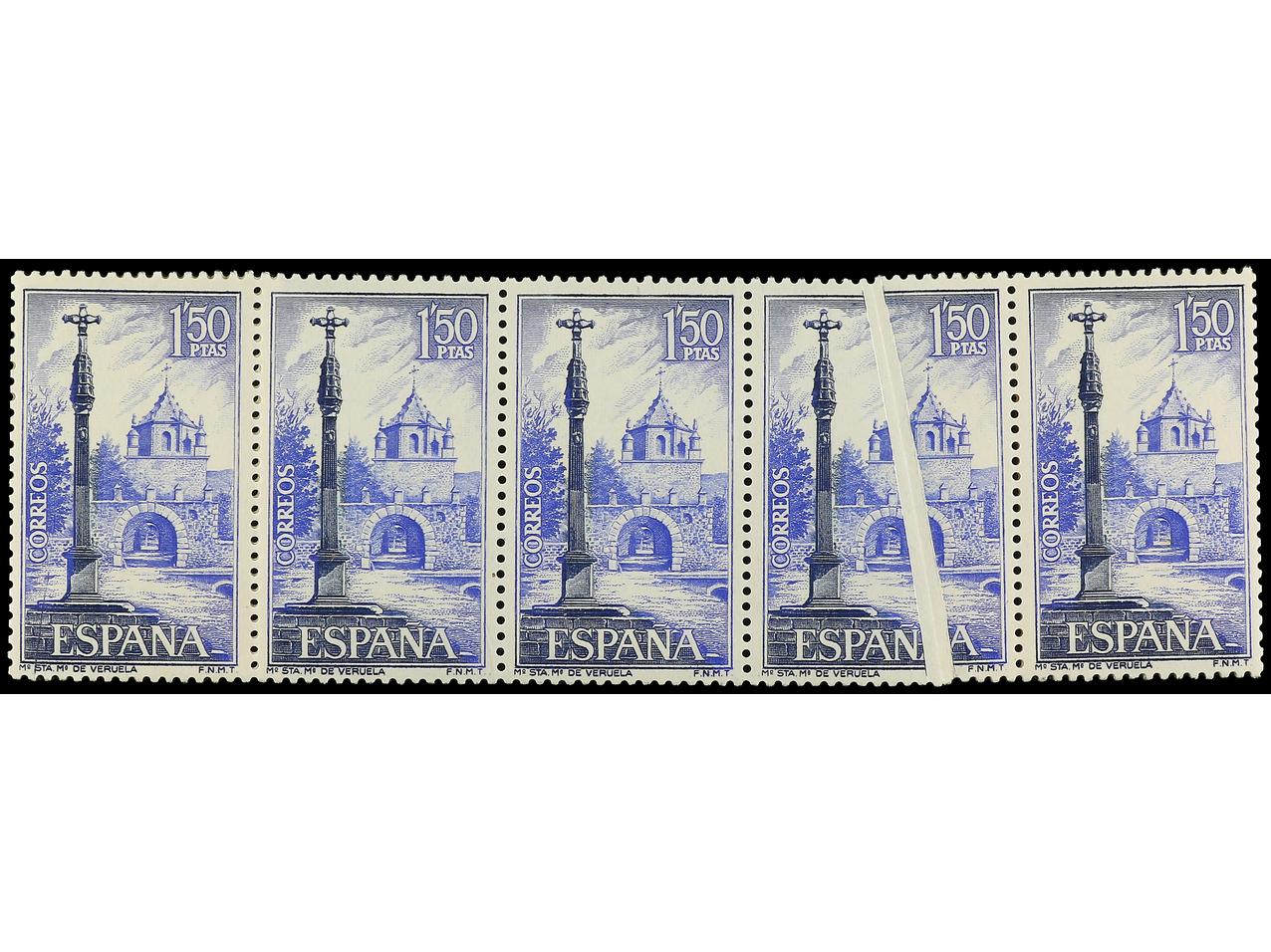 ESPAÑA. MONASTERIO DE VERUELA. 1,50 pts. azul. Tira de cinco FUELLE DE PAPEL. Ed.1834. (Image1)
