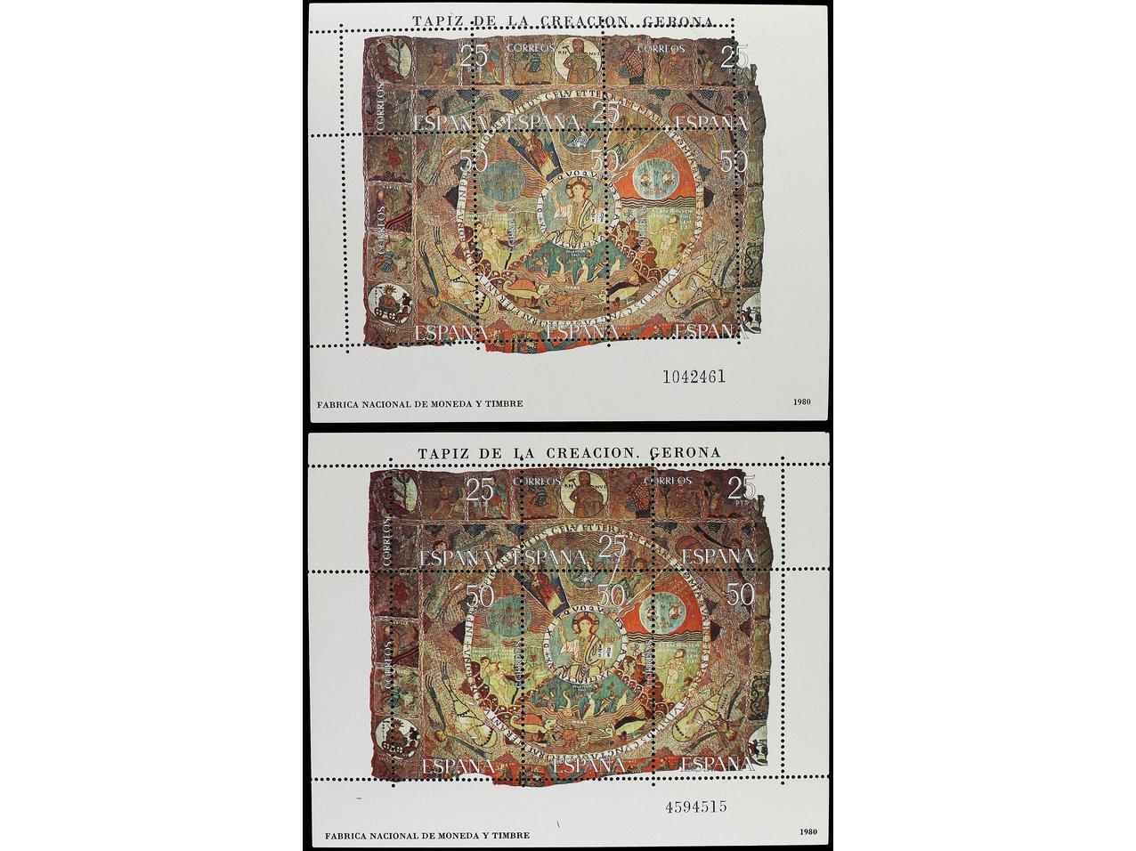 ESPAÑA. TAPIZ DE LA CREACIÓN. HB multicolor DENTADOS DESPLAZADOS una a la derecha y otra a la izquierda. Ed.2591. (Image1)