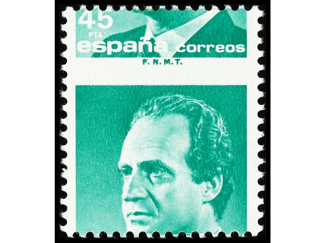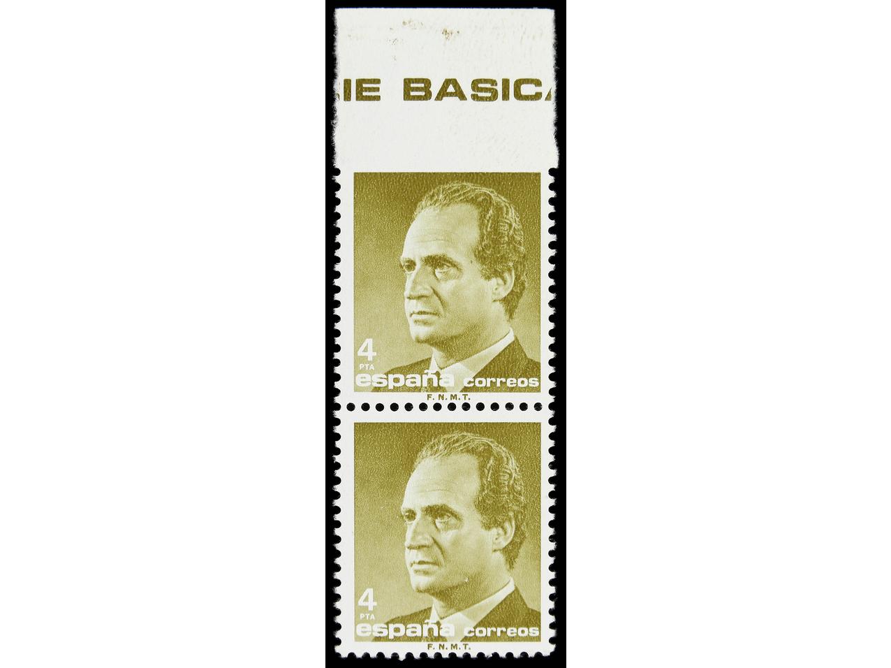 ESPAÑA. JUAN CARLOS I. 4 pts. oliva. Pareja vertical margen superior SIN DENTAR. RARO y de LUJO. Ed.2831. (Image1)