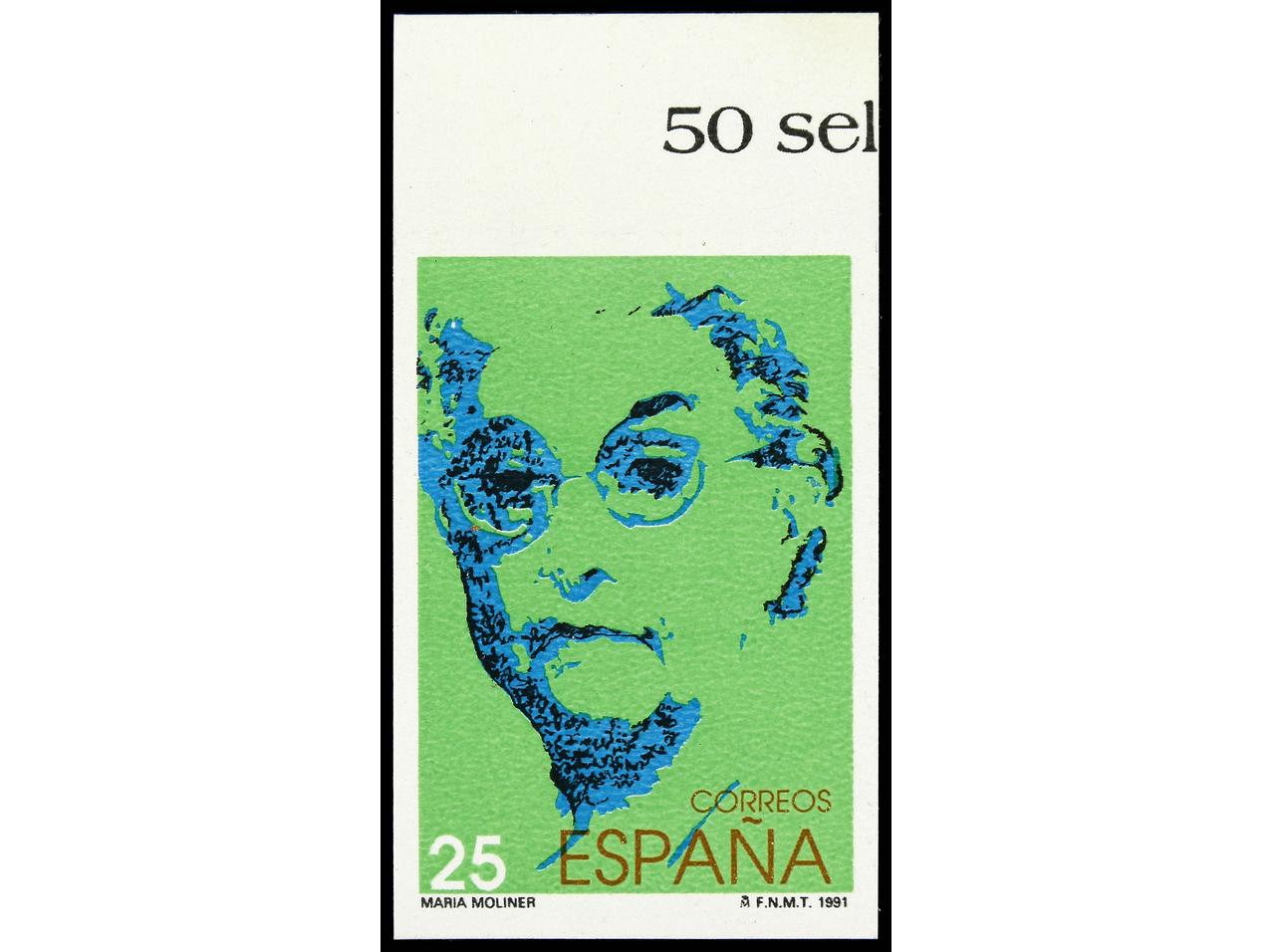 ESPAÑA. MARIA MOLINER. 25 pts. multicolor SIN DENTAR borde superior de hoja. MUY RARO y de LUJO. Cert. GRAUS. Ed.3099s. (Image1) (Image2)