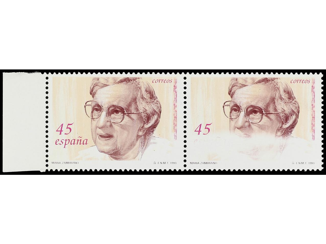 ESPAÑA. MARIA ZAMBRANO. 45 pts. lila y rosa. Pareja, un sello IMPORTANTE DEFECTO DE IMPRESIÓN. Ed.3241ip. (Image1)