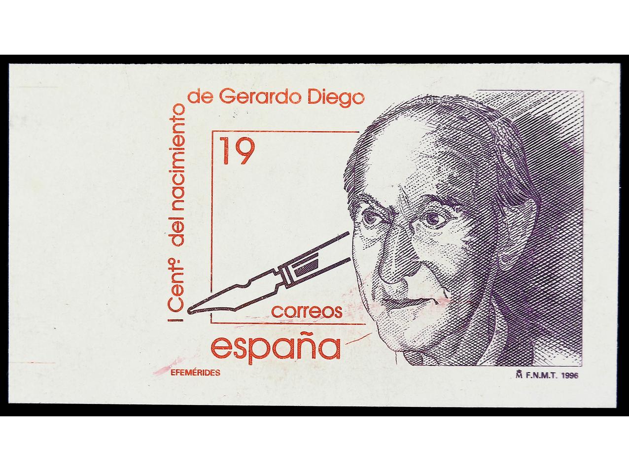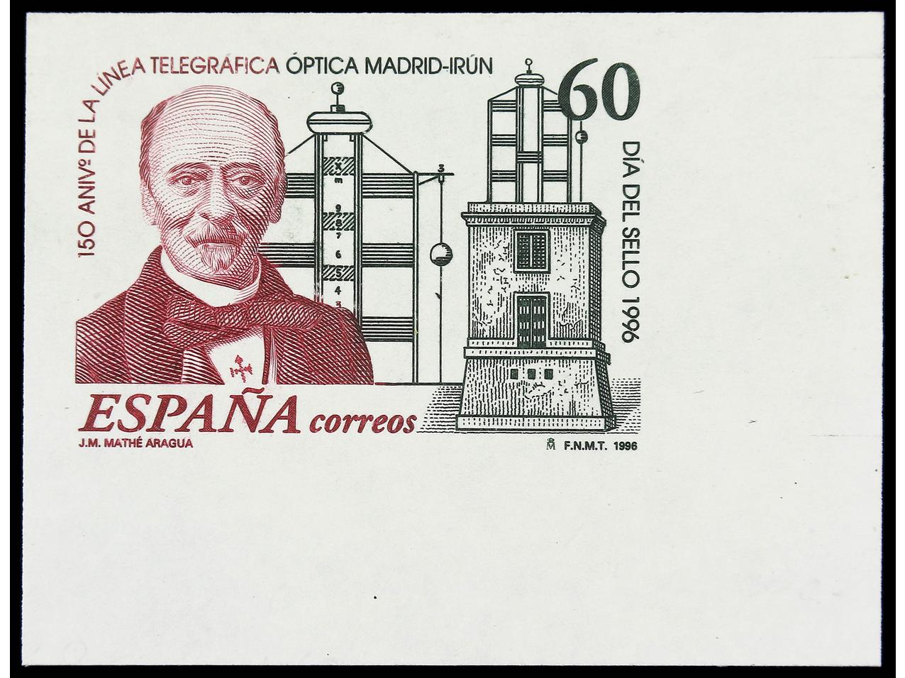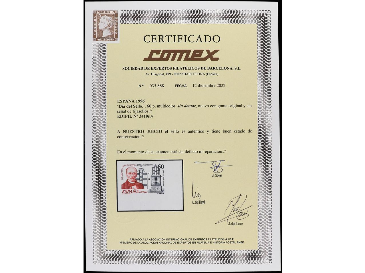 ESPAÑA. DIA DEL SELLO 1996. 6 pts. multicolor SIN DENTAR. RARÍSIMO. Cert. COMEX. Ed.3410s. (Image1) (Image2)
