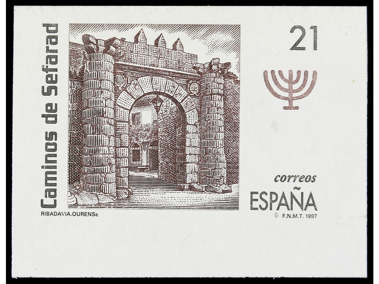 ESPAÑA. RUTA DE LOS CAMINOS DE SEFARAD. 21 pts. castaño y castaño oscuro SIN DENTAR. RARÍSIMO. Cert. COMEX. Ed.3520s. (Image1) (Image2)