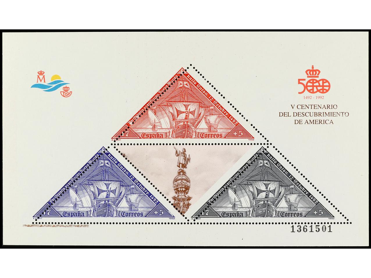 ESPAÑA. V CENTENARIO DESCUBRIMIENTO DE AMÉRICA. HB. Variedad DENTADO MUY DESPLAZADO. RARA. Ed.3163. (Image1)
