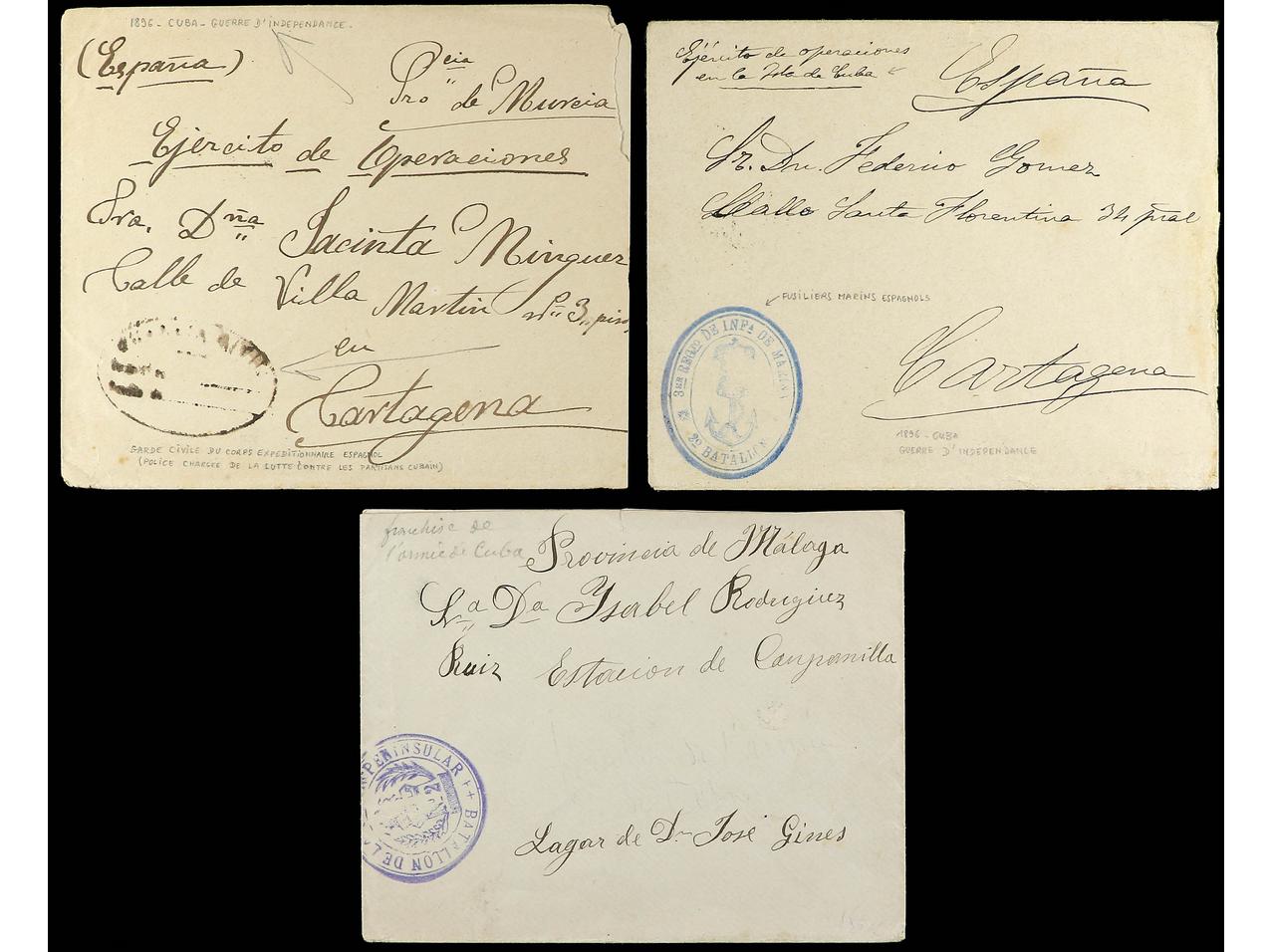 CUBA. 1896-97. Tres cartas con marcas militares españolas durante la Guerra de Independencia de Cuba. (Image1) (Image2)