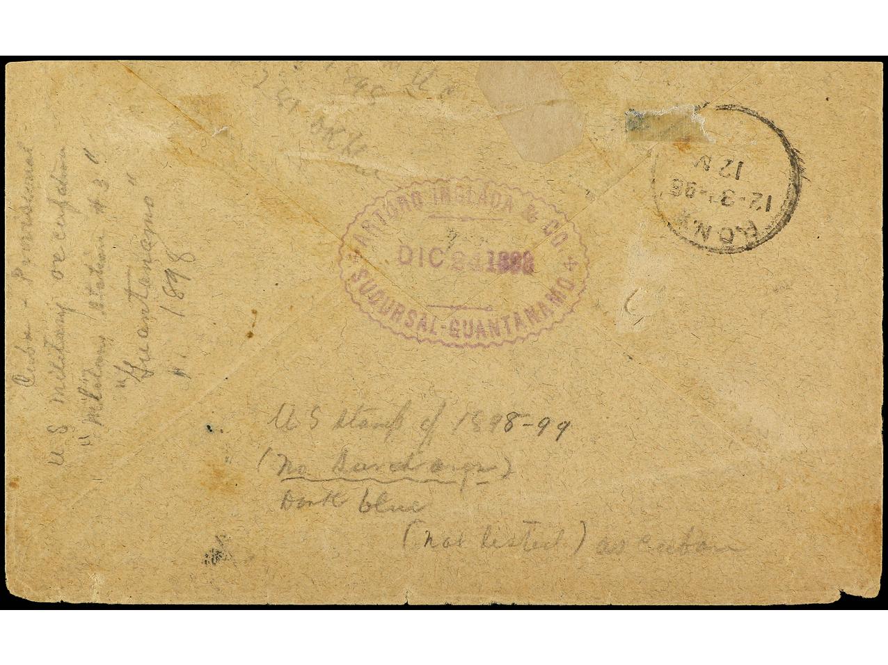 CUBA: OCUPACION ESTADOS UNIDOS. 1898 (24 diciembre). GUANTANAMO a NEW YORK circulada con sello US de 5 cts. azul, mat. MIL. STA. Nº 3/GUANTANAMO, CUBA durante los primeros días de la ocupación. (Image1) (Image2)
