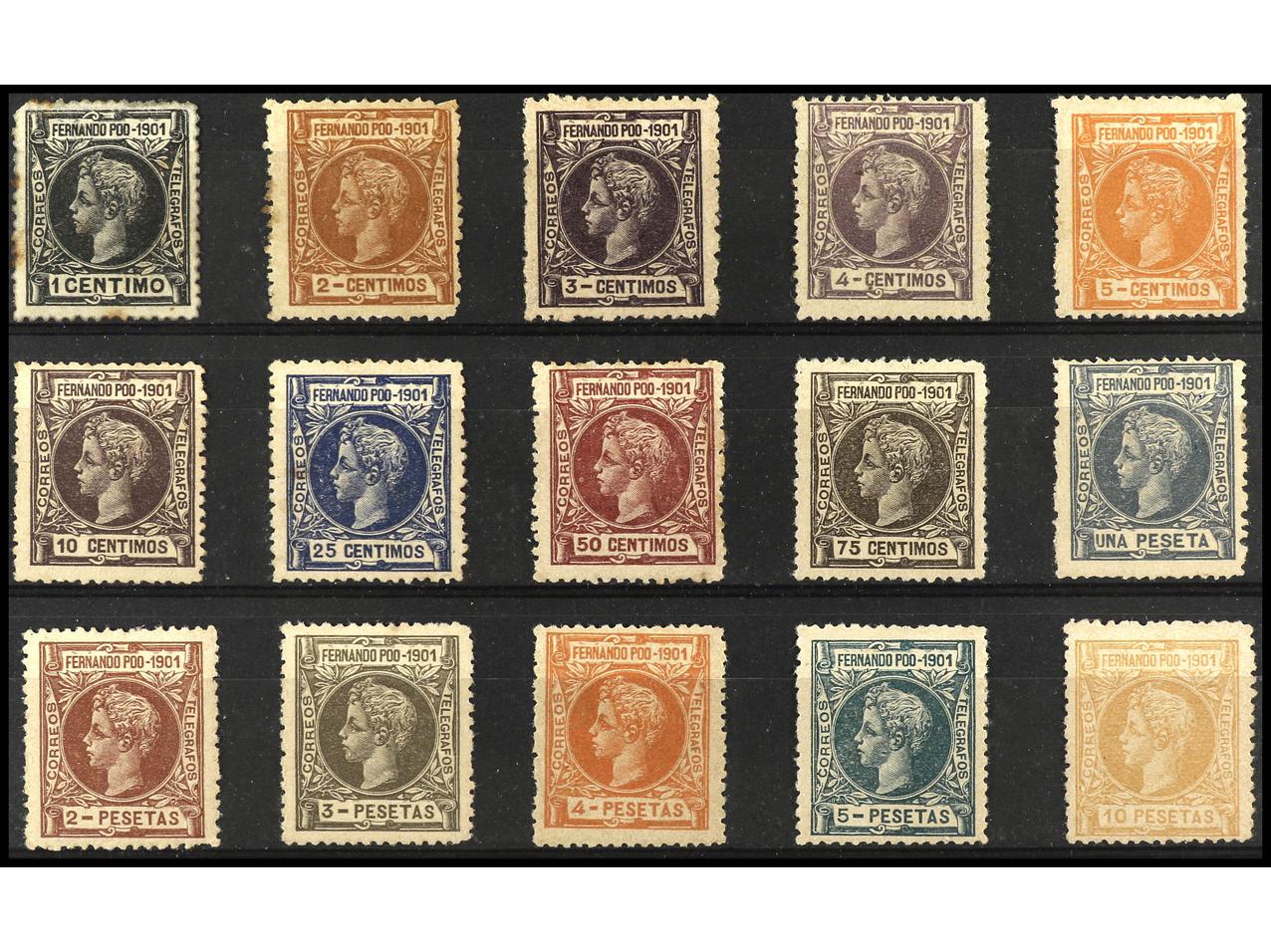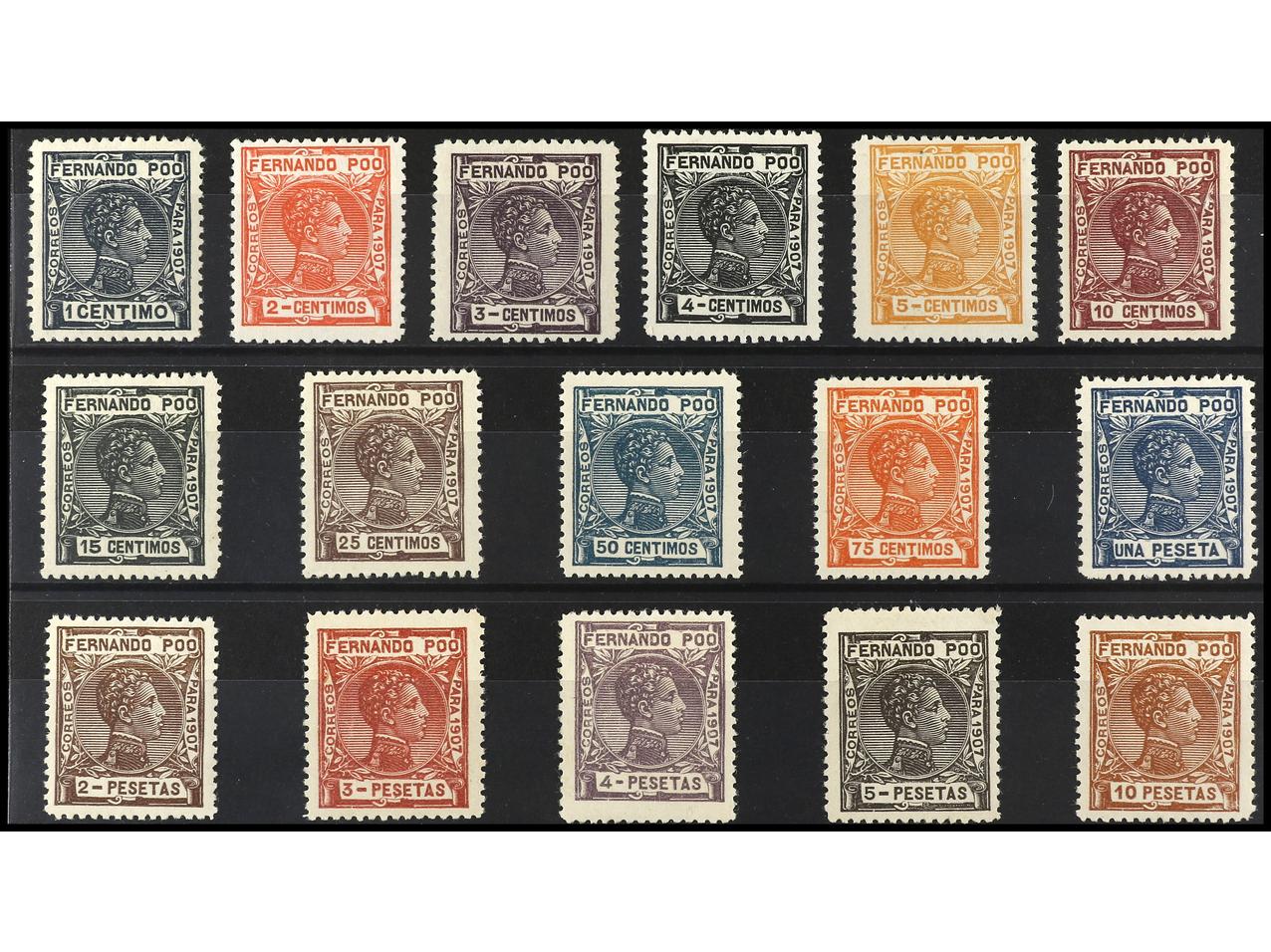 COLONIAS ESPAÑOLAS: FERNANDO POO. SERIE COMPLETA, muy bien centrado en general. RARA así. MAGNÍFICA. Ed.95/109. Cat. 700€. (Image1) (Image2)