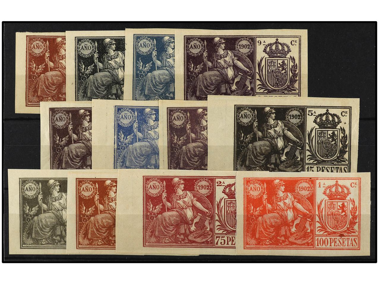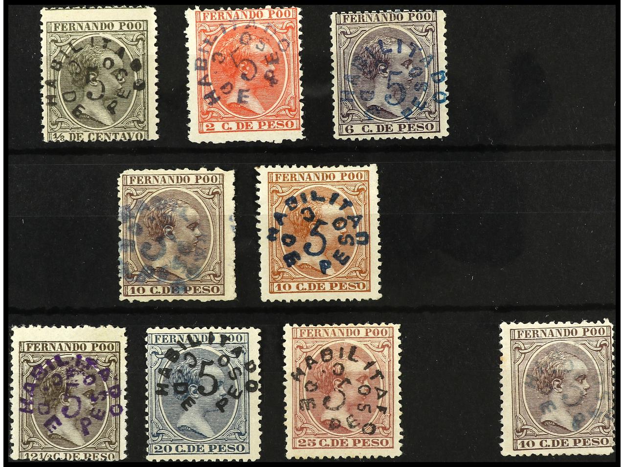 COLONIAS ESPAÑOLAS: FERNANDO POO. 1902. FISCALES. SERIE COMPLETA. 12 valores, incluyendo el 100 pts. rosa. MUY RAROS. (Image1) (Image2)