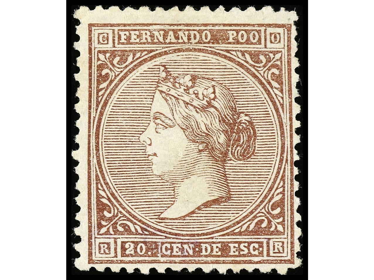 COLONIAS ESPAÑOLAS: FERNANDO POO. 1868. 20 cts. castaño. Buen ejemplar. Ed.1. Cat. 1.000€. (Image1)