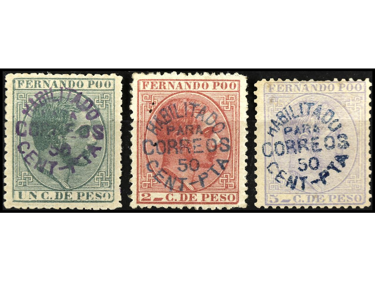 COLONIAS ESPAÑOLAS: FERNANDO POO. SERIE COMPLETA. 3 valores. Ed. 11 sin goma. Ed.9/11. Cat. 500€. (Image1) (Image2)